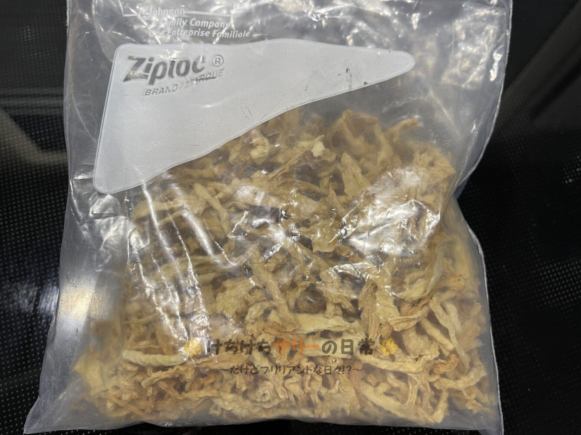 3月、マイペンライ号を置かせてもらっている伯母さんの家に行った時に、手作りの切り干し大根を貰ったから水でもどしておかないとね😉
