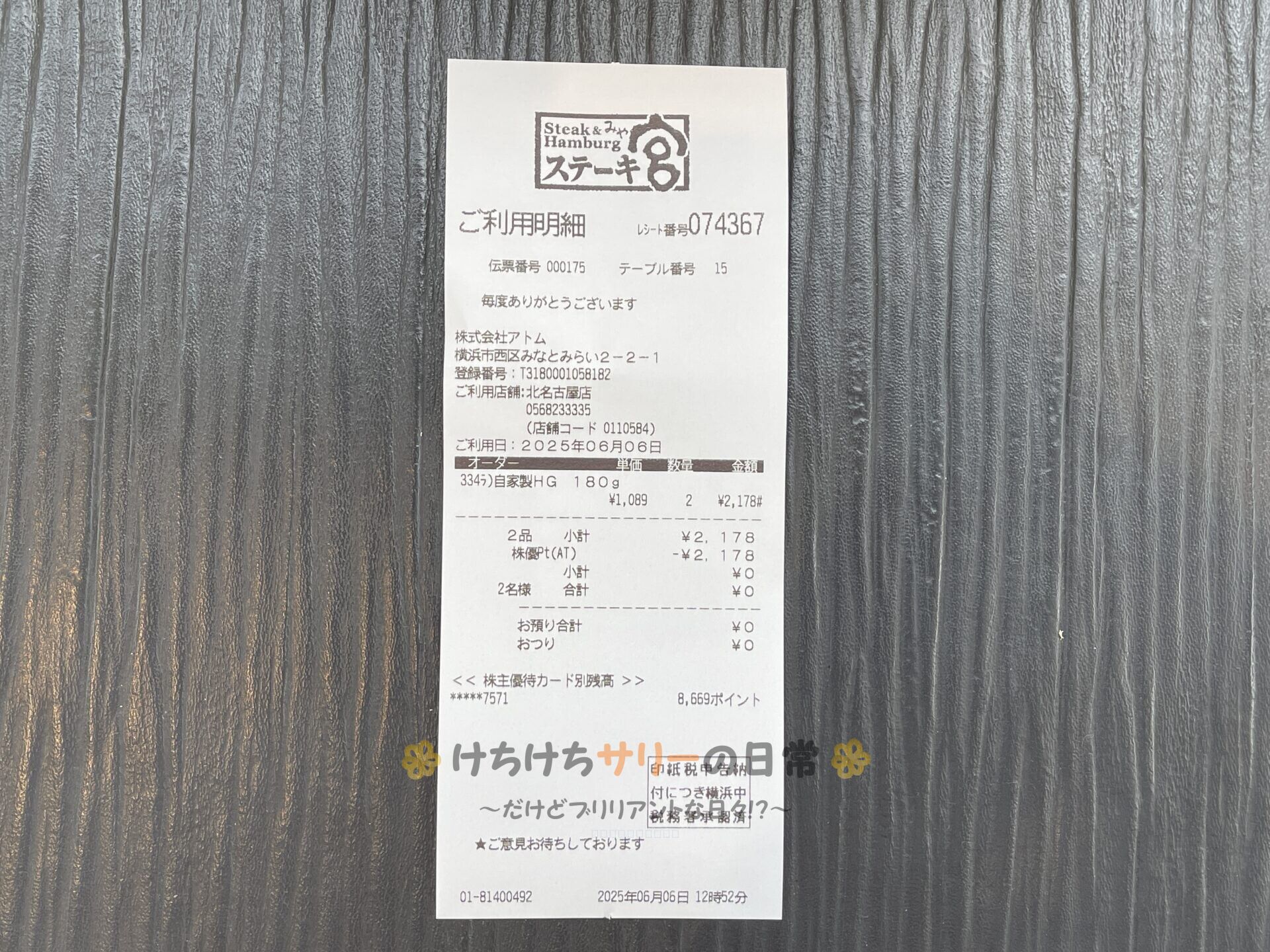 だからアメリカ旅行に行く前に使わないと駄目なんだよ~!! …という訳で、この日のランチ2,178円は株主優待ポイントから支払いしたから無料だったよ🆓