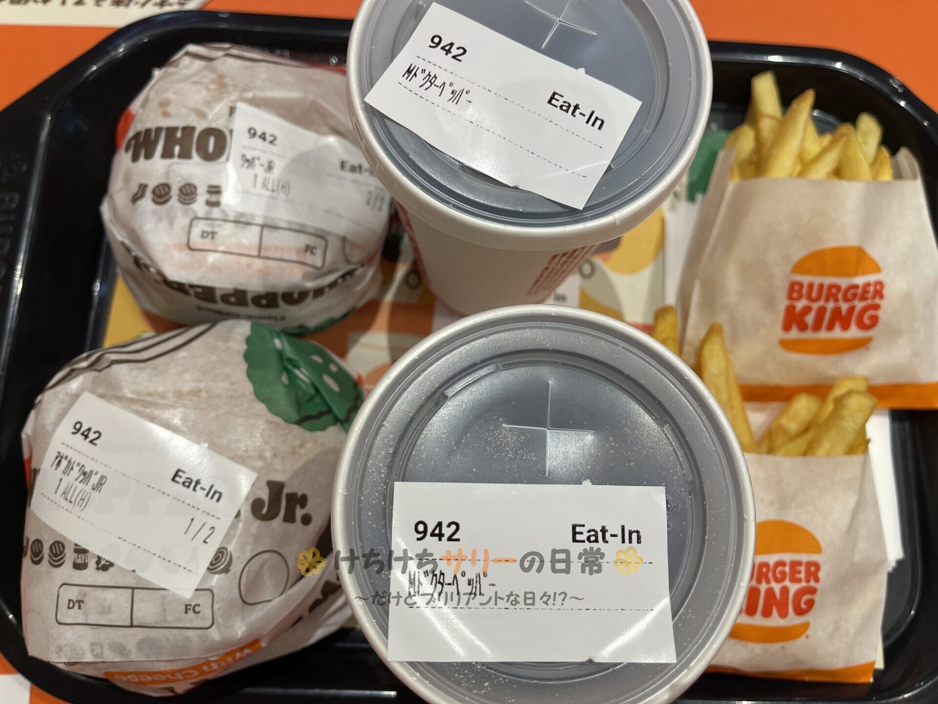 …という訳で、サリーは「アボカドワッパーJrセット+ポテトMサイズアップ:650+50円」、相方は「ワッパーJrセット+ポテトMサイズアップ:600+50円」を頼んだよ。