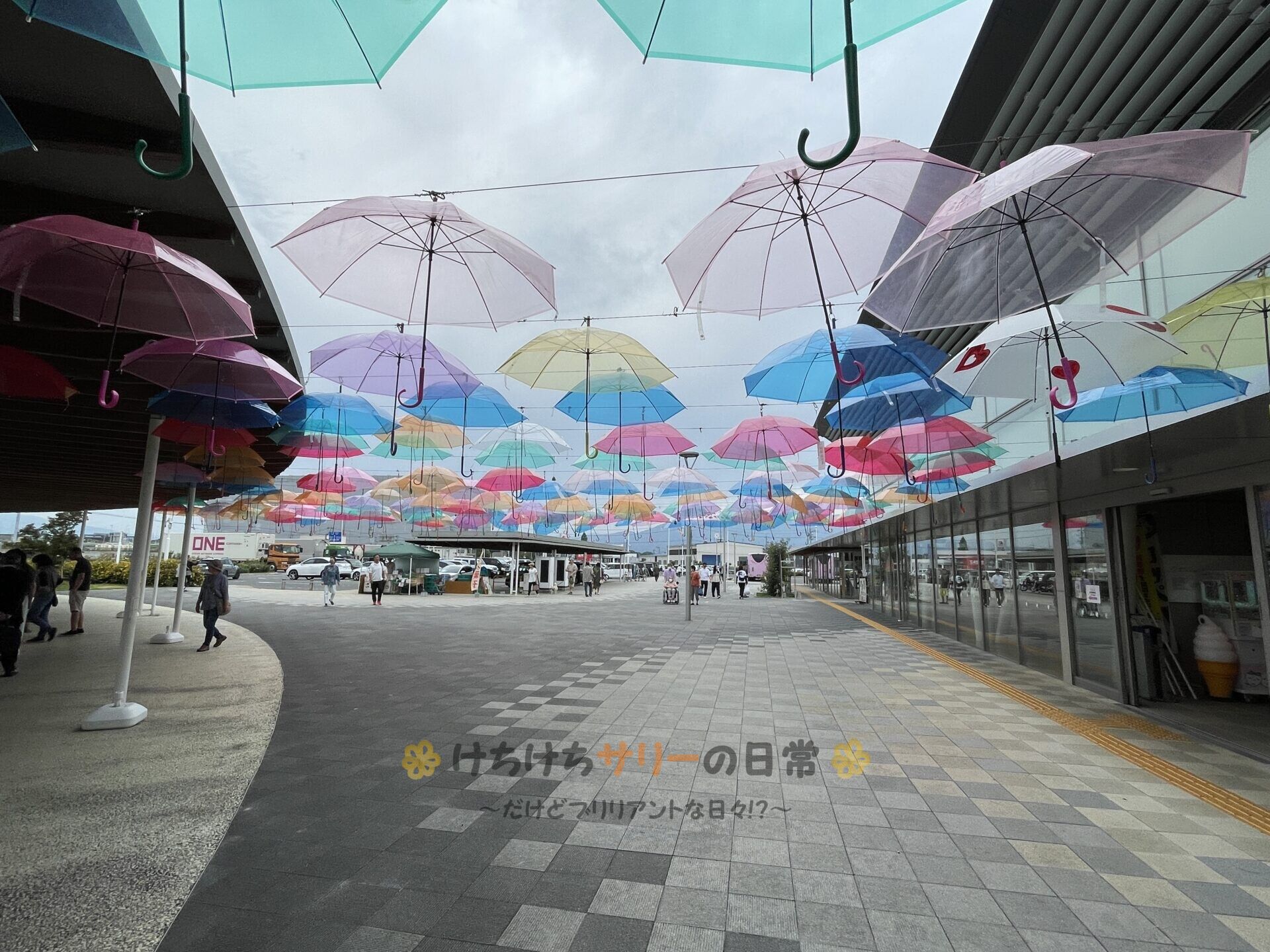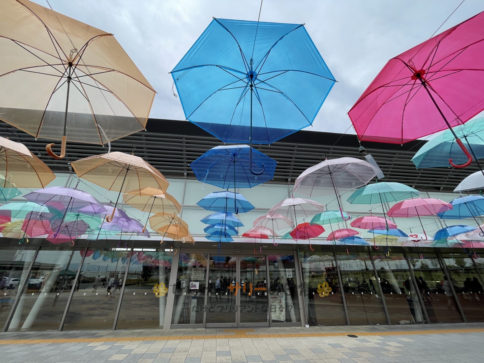 梅雨の季節なので透明の傘で装飾されてて映えスポットになってた🌈