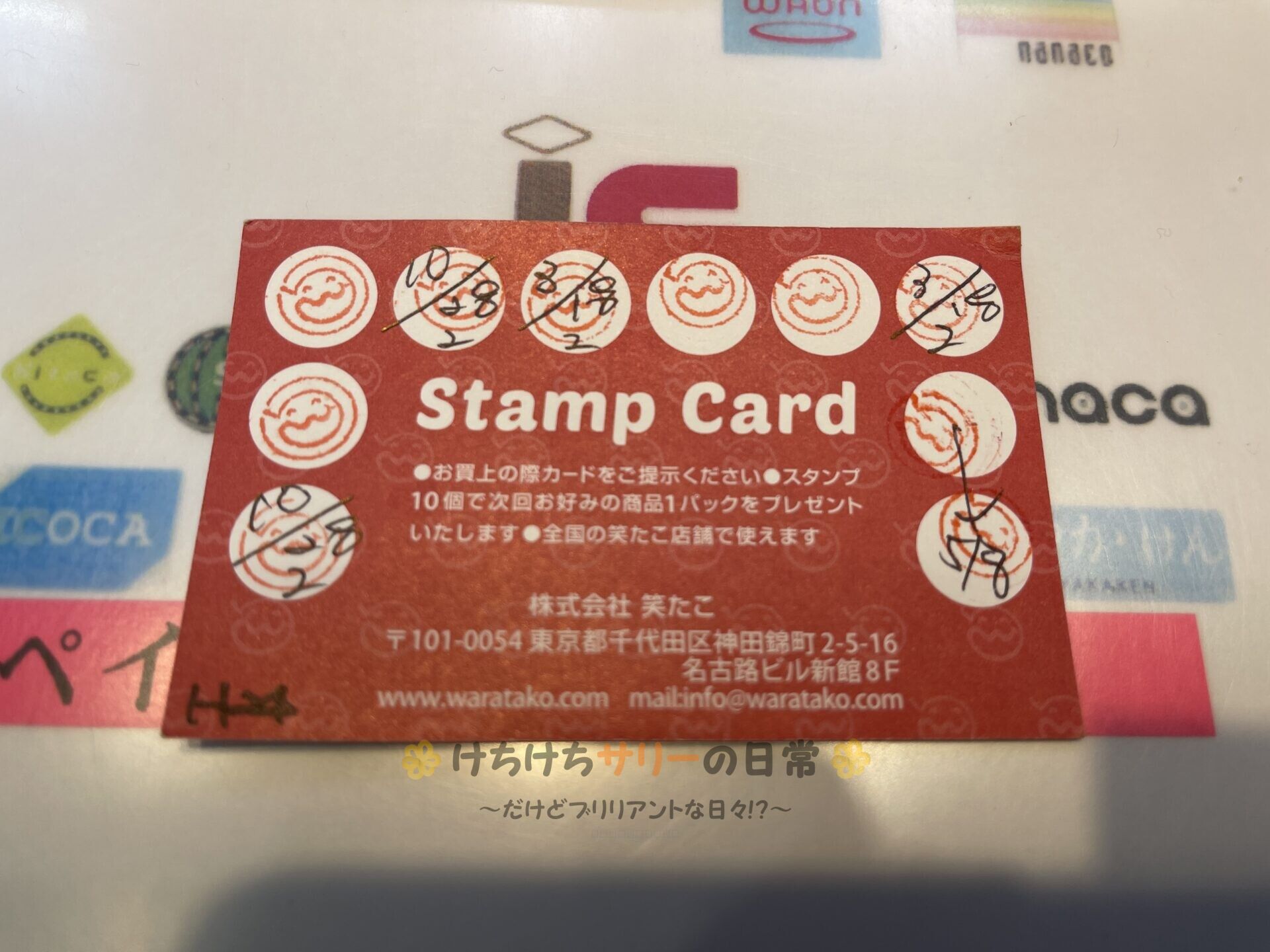 たこ焼きを3パック購入。 前の日はサリーパパ&ママの奢りで1円も使ってなかったから、この日のお昼ご飯はサリーが奢ってあげる事にしたんだけど、スタンプカードが満タンになってて1パック無料になったから支払いは1000円だったよ🉐 ラッキー✌️