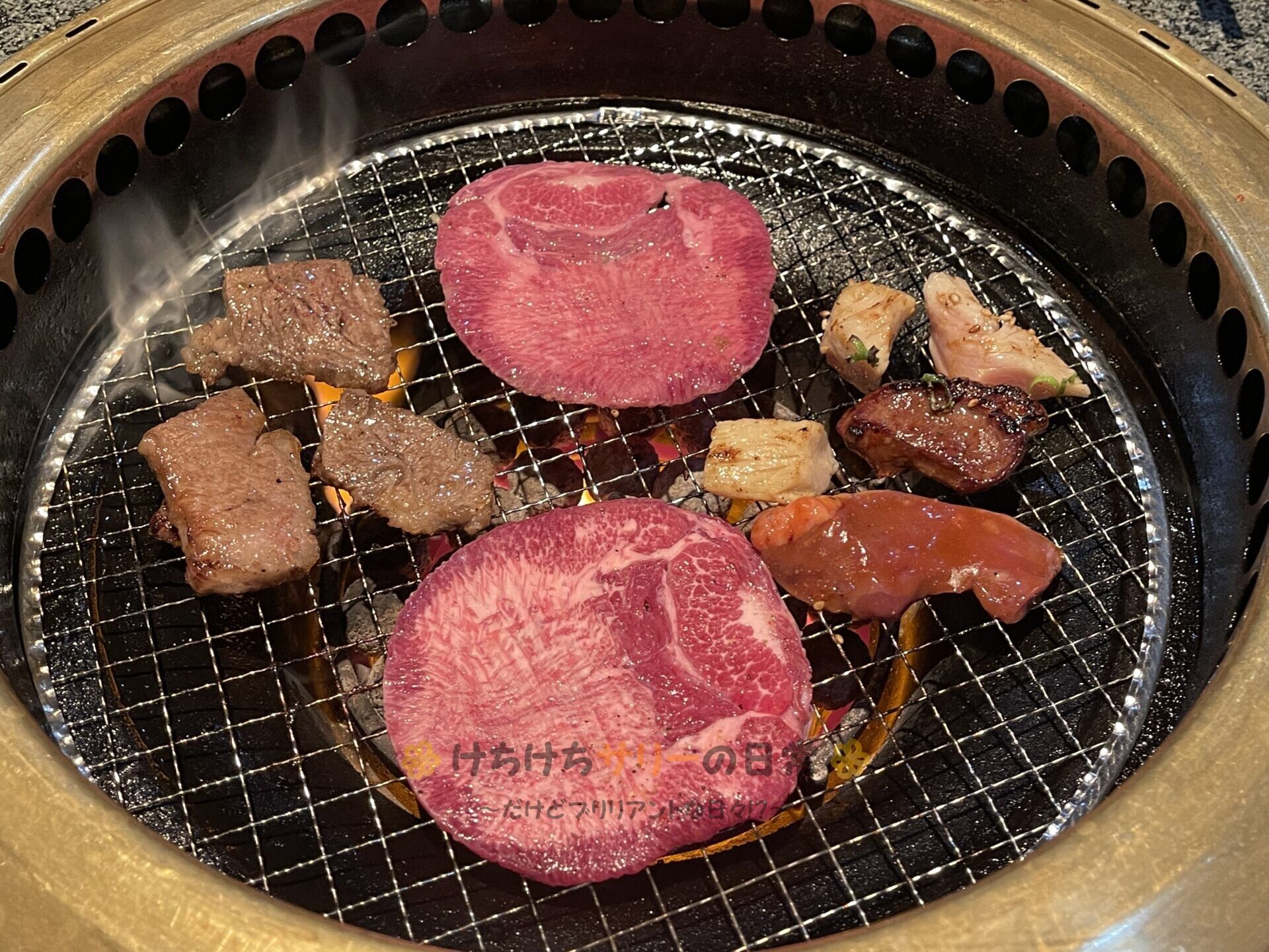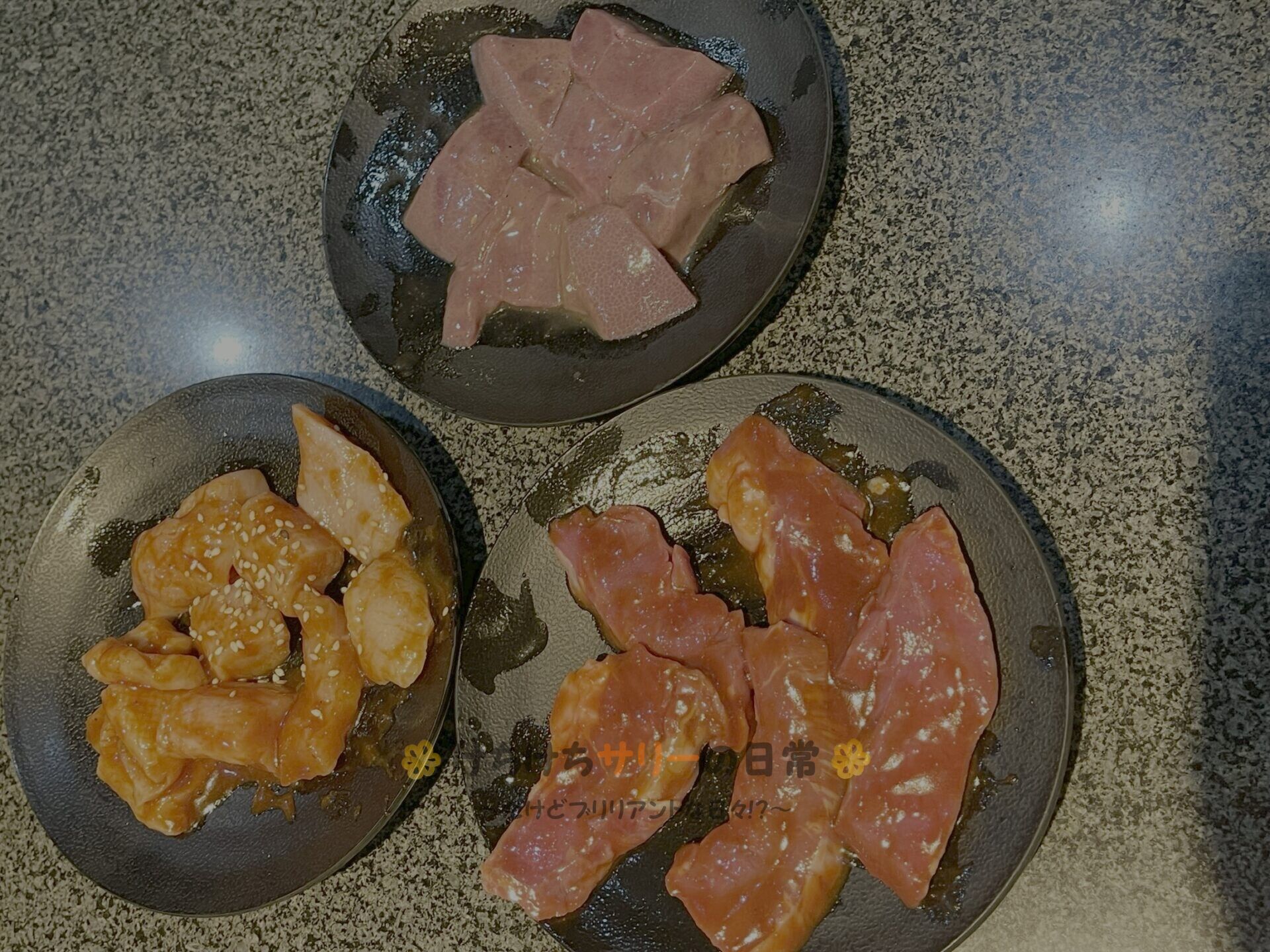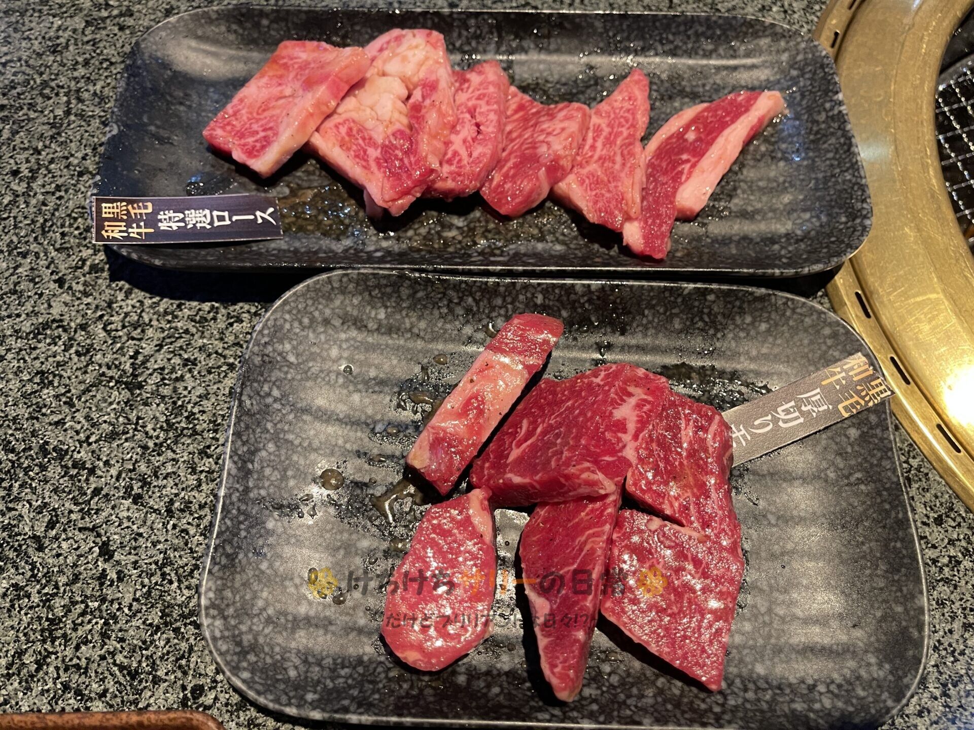 「黒毛和牛特選ロース:759円」、「黒毛和牛厚切りモモ:748円」。 サリーと相方2人ならこんな高い肉は注文しないけど、この日はサリーパパの奢り。 サリーパパはこういうのにはけちけちせずに食べたい物を食べる主義なので高級肉が食べられて嬉し~い😆
