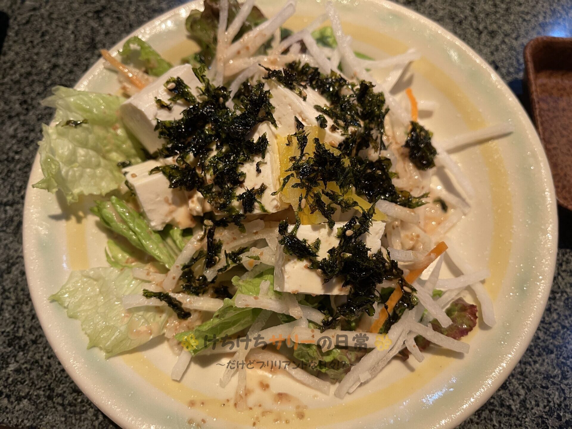 「豆腐サラダ:319円」。 韓国海苔がかかってて美味しくて、サリーママと2人で食べたんだけど一瞬で無くなった。
