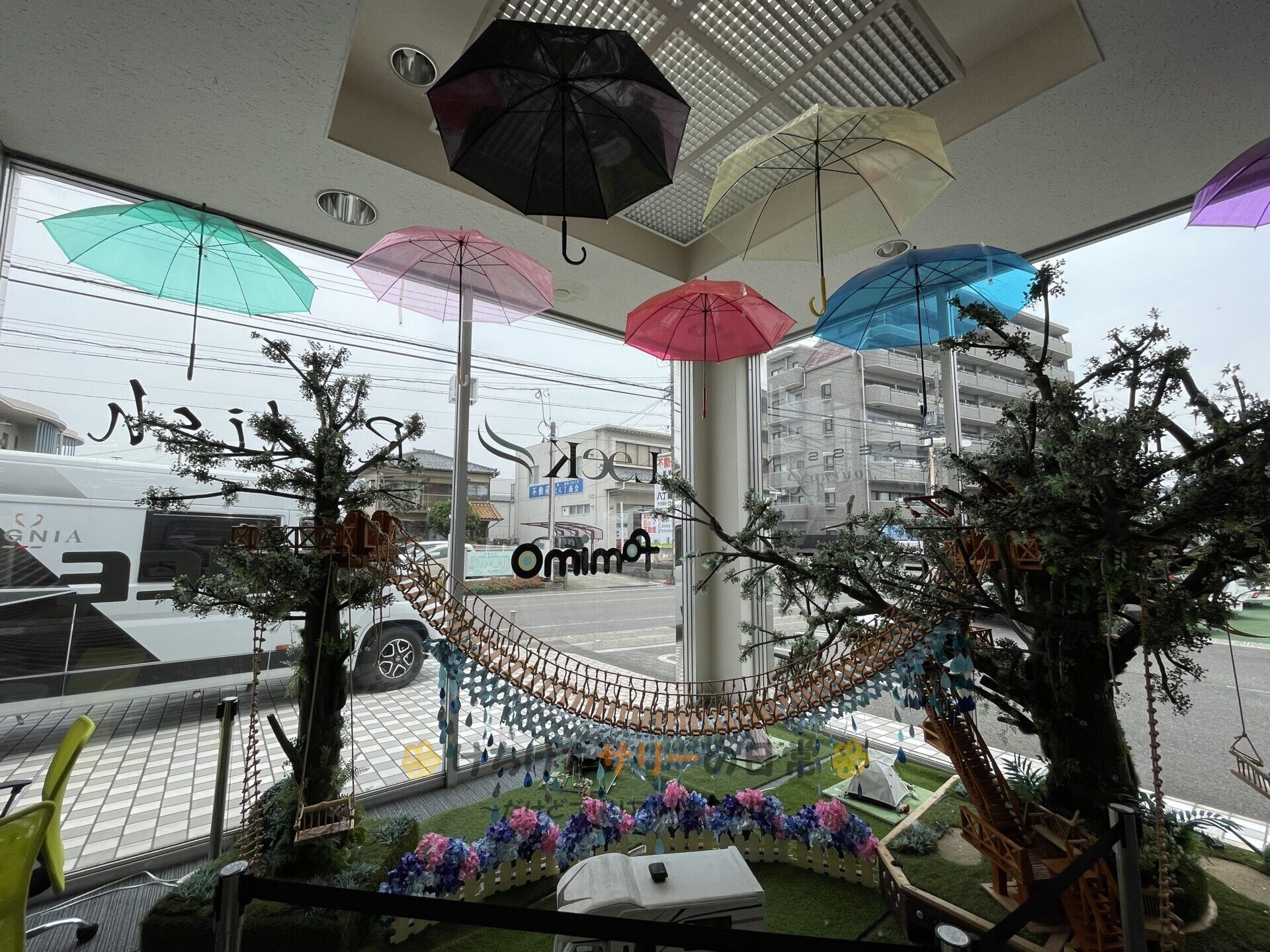 店内には道の駅パレットピアおおの」と同じく梅雨をイメージする傘が装飾されている✨
