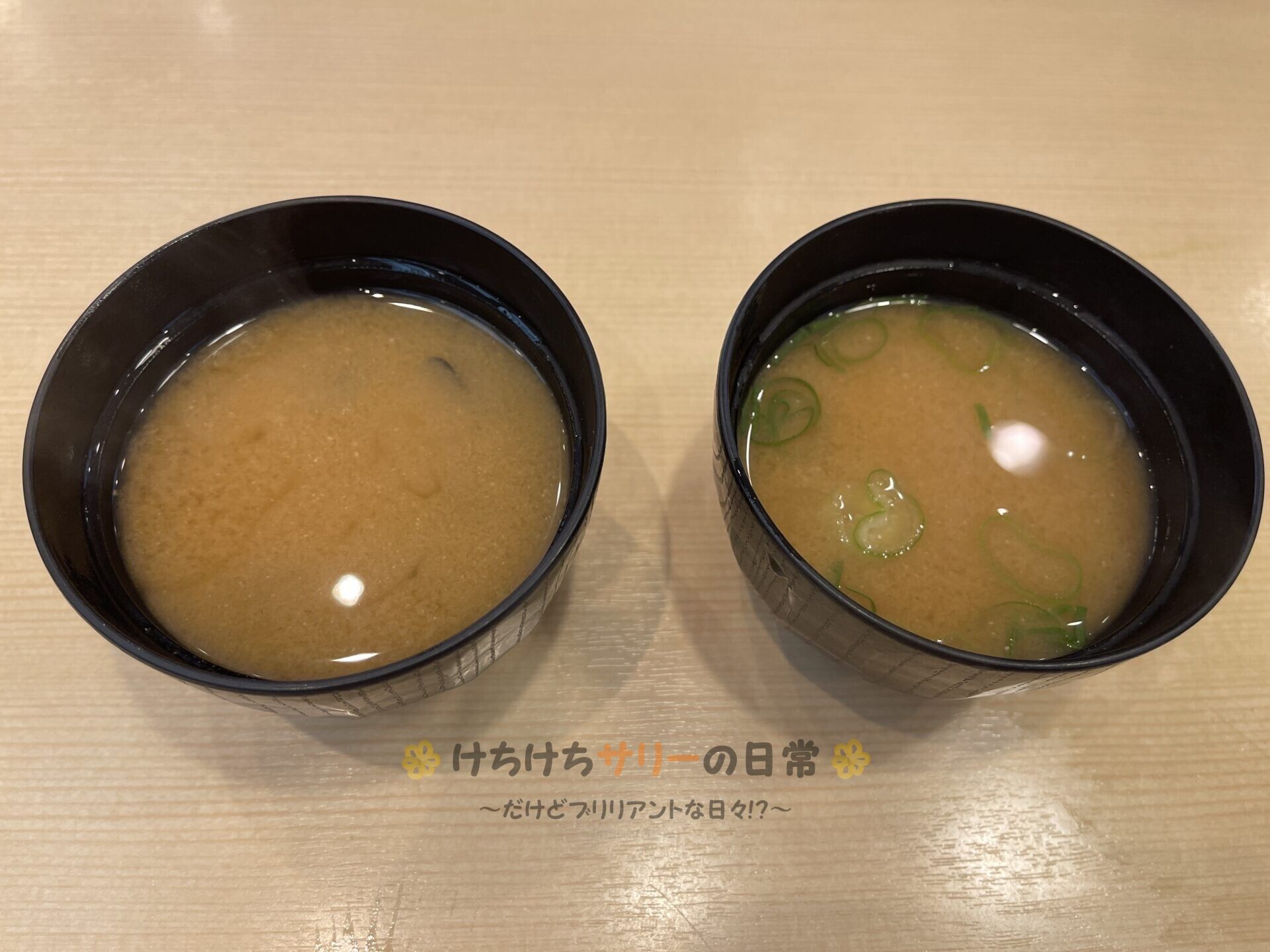 平日のランチタイムは「日替わり味噌汁」は無料なので、味噌汁も楽しむよ🙂