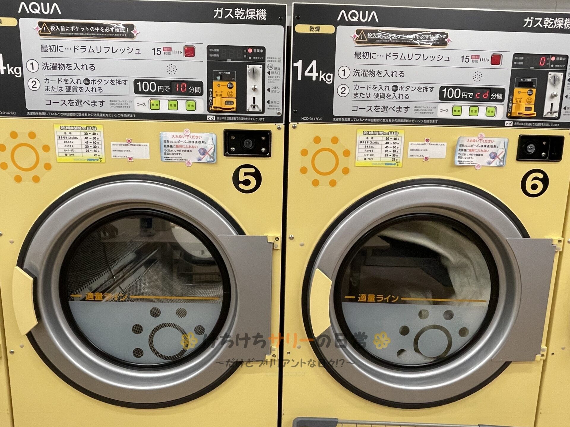 洗濯が終わった後は近くのコインランドリーに持って行って乾燥機で洗濯した衣類を乾燥。 20分ぐらいコインランドリーで待つ。
