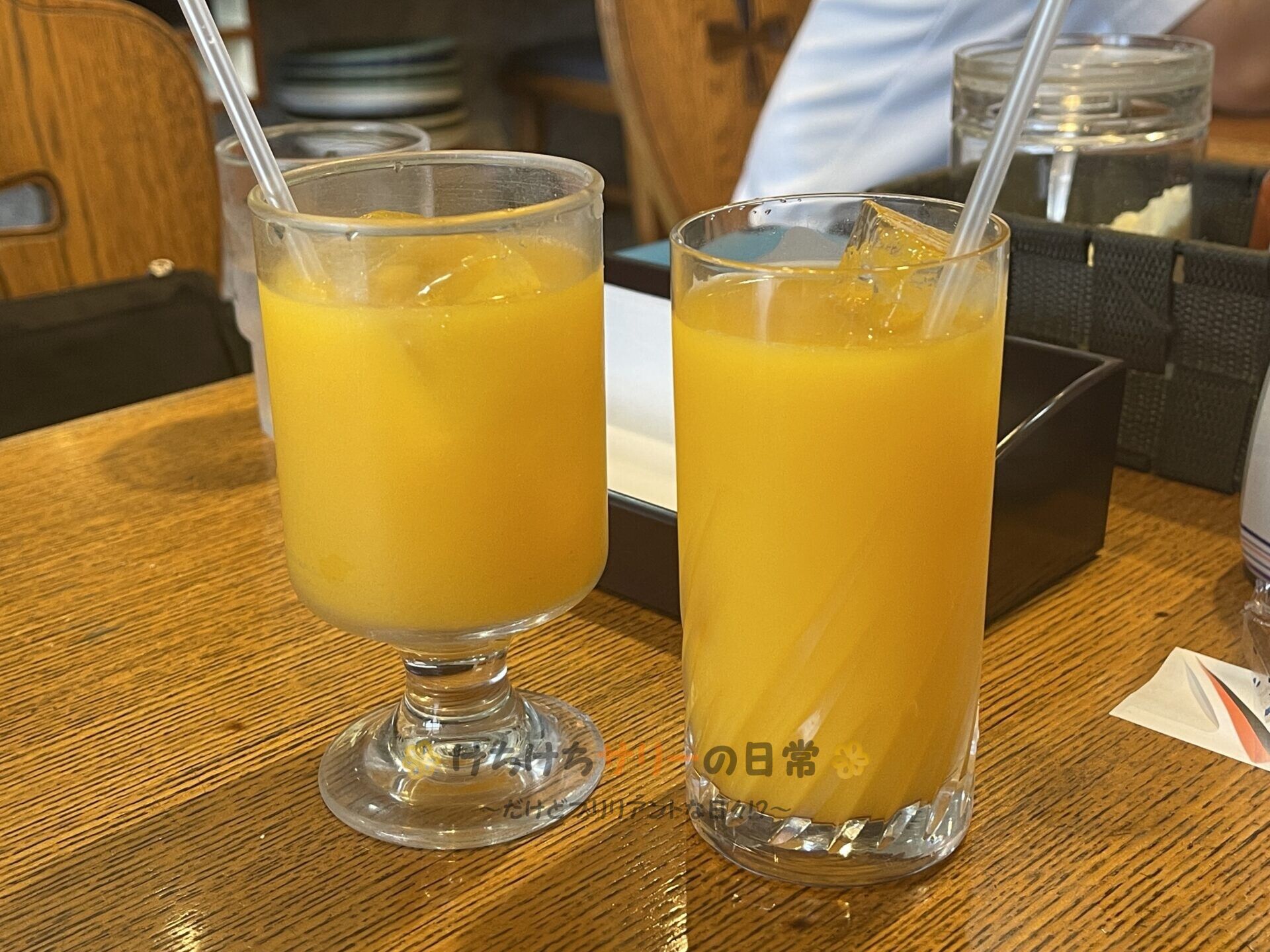 食後はいつものようにオレンジジュースを楽しんだよ😍
