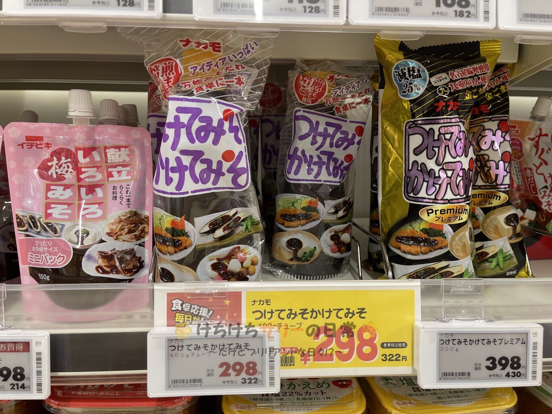 サリーママからお遣いで『つけてみそ、かけてみそ』を頼まれてたので買うことに。 ナカモの『つけてみそ、かけてみそ』以外にも…