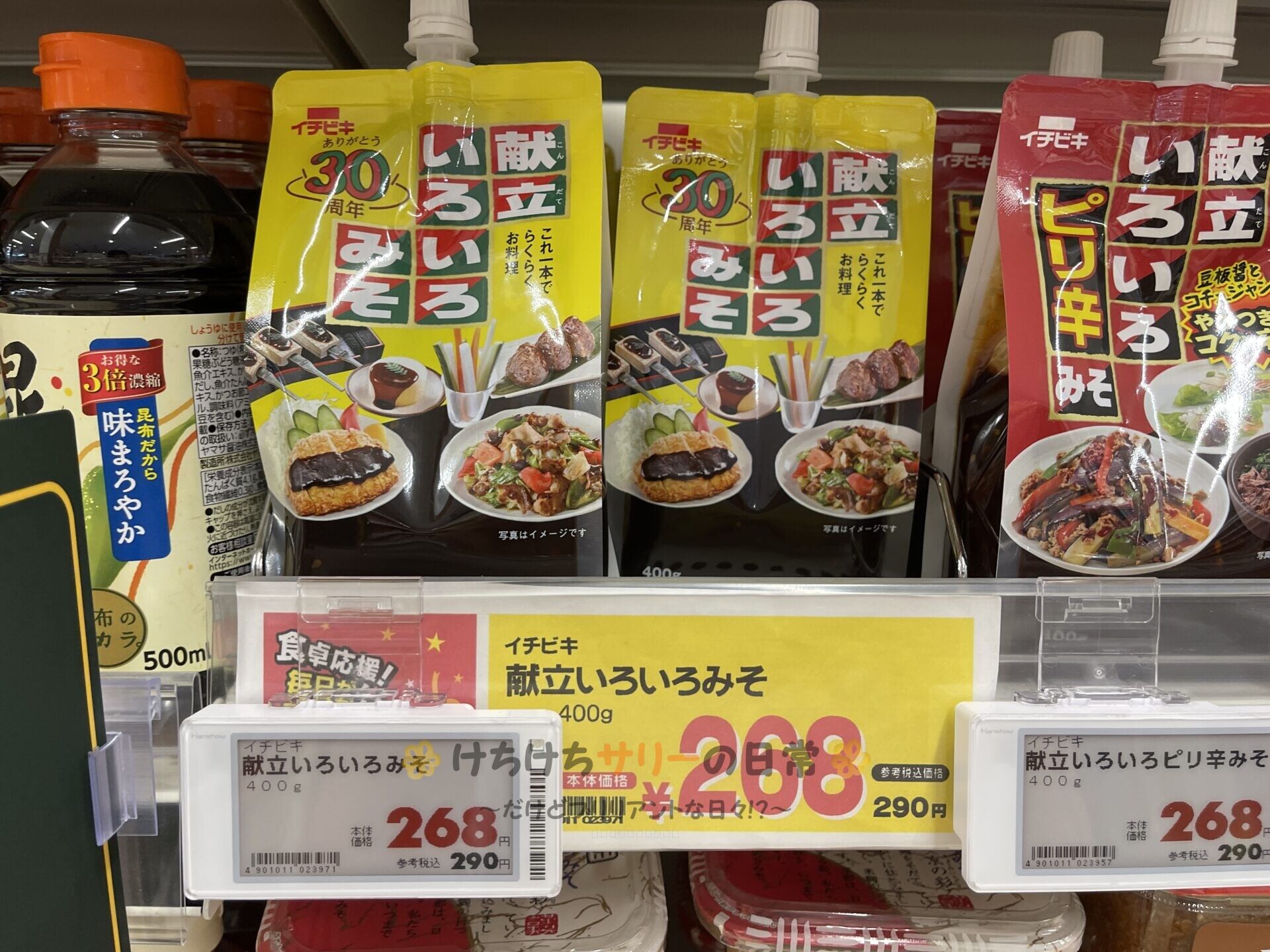 イチビキの『献立いろいろみそ』もあるから、写メでサリーママにどちらを買うかの確認も怠らないサリー。