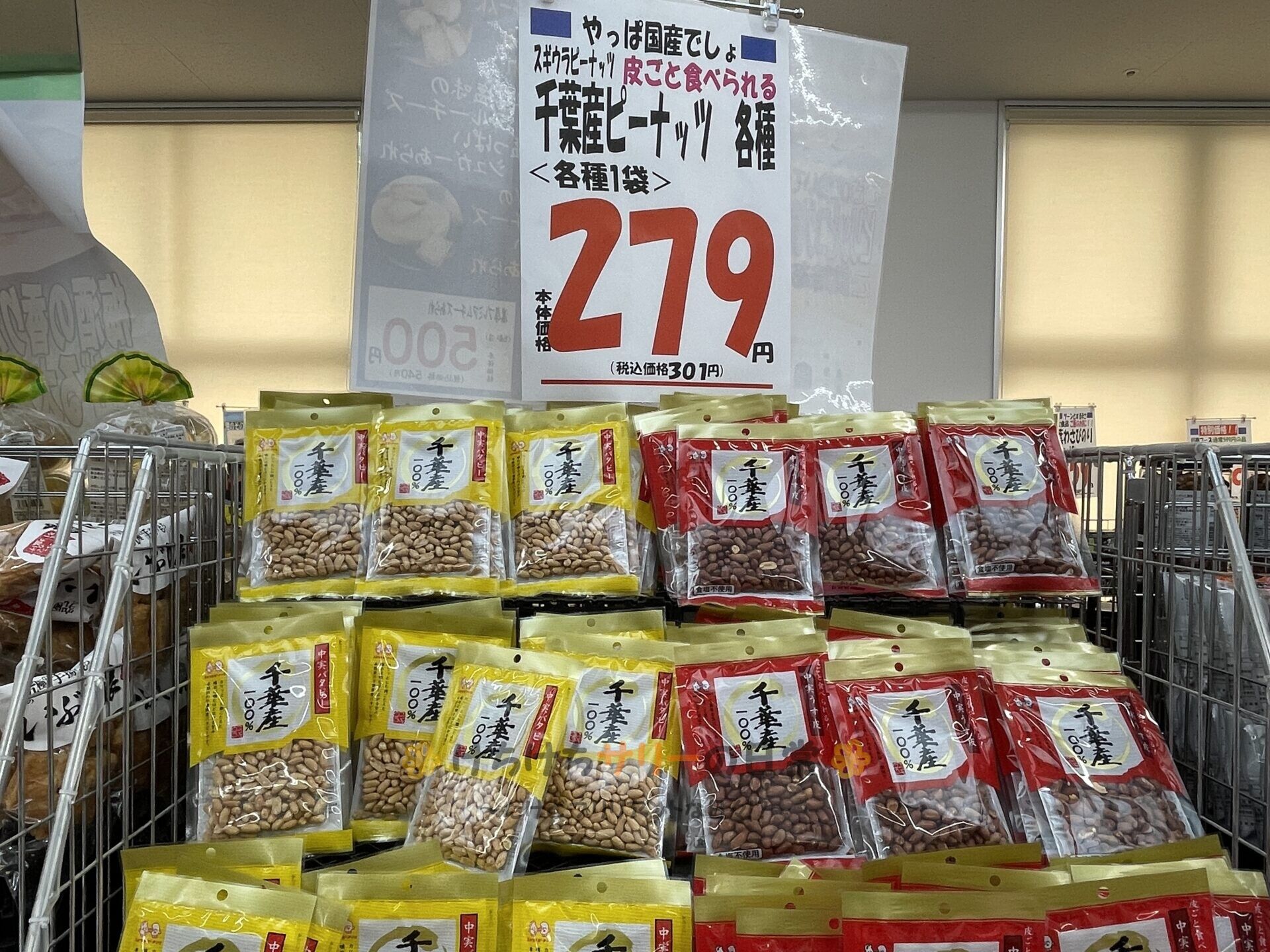 あっ、こんな所に千葉県産ピーナッツがある! この前道の駅で買った落花生より安い😮 まぁこの前買ったのは無塩だったからね😉