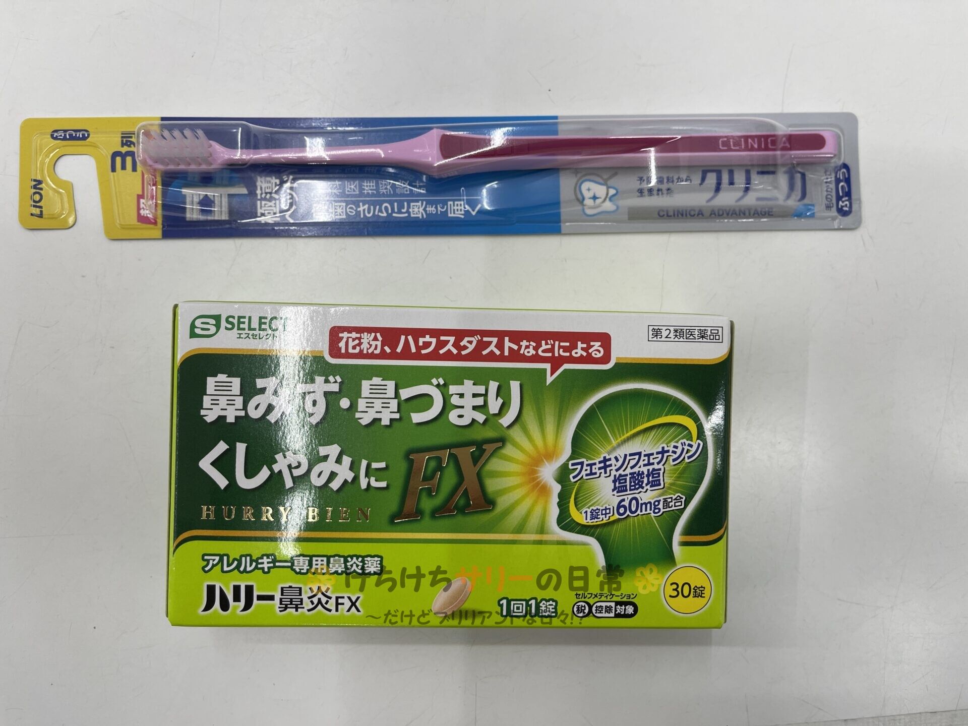 スギ薬局」に行って、歯ブラシや念の為のアレルギー専用鼻炎薬を購入。