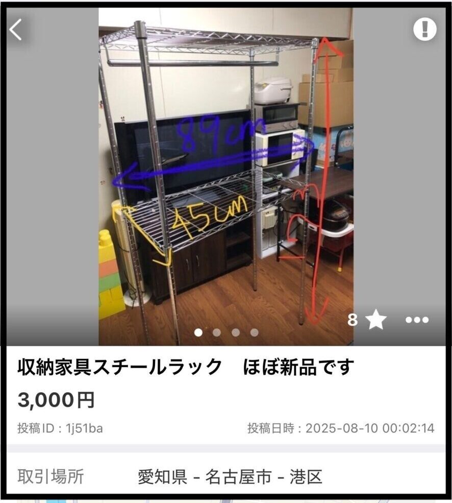 こういう大型家具は送料もかかるから、メルカリやヤフオクよりもジモティーでの取引が1番安いね🉐