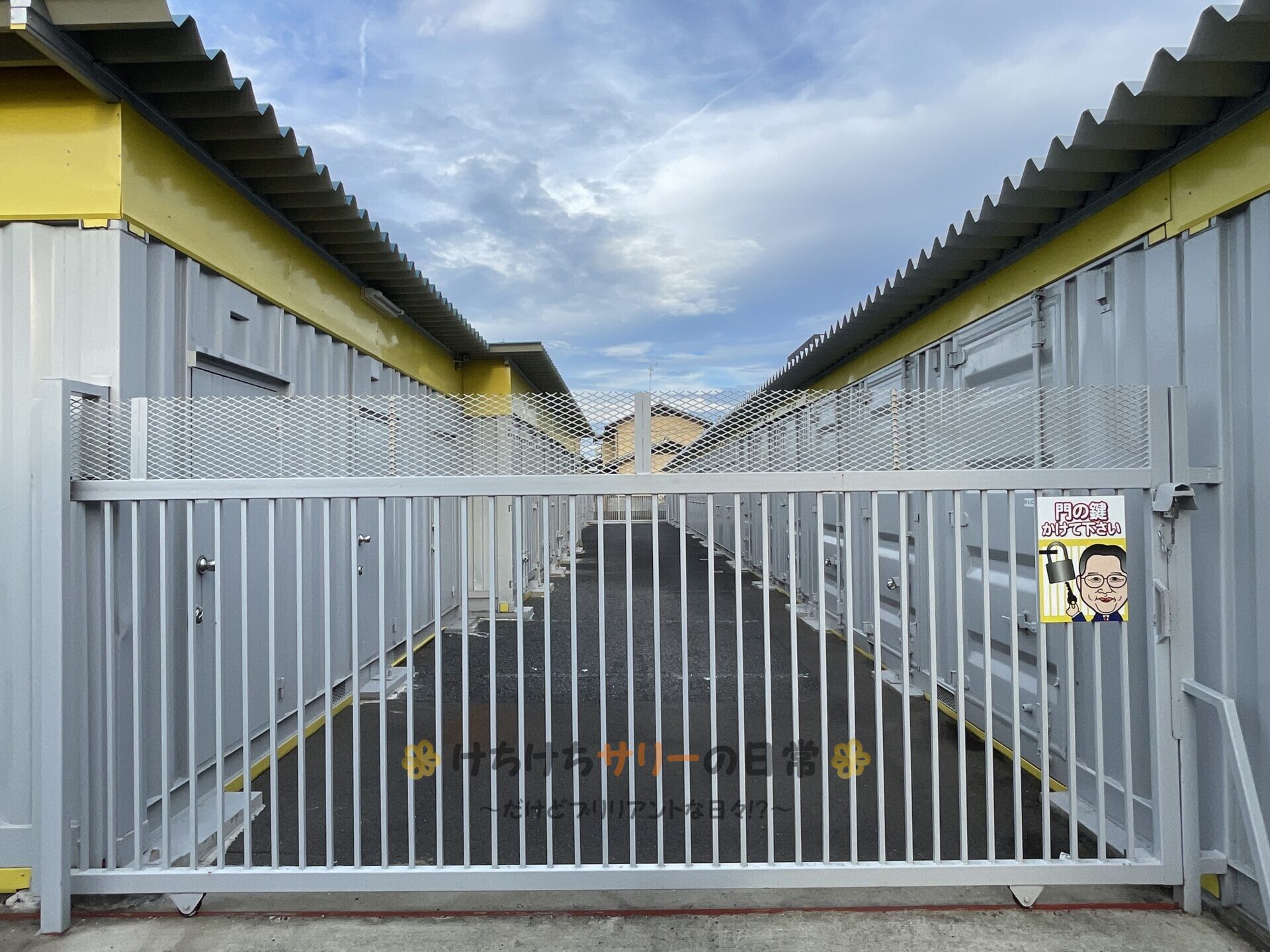 やって来たのは前の日に契約した一宮市のトランクルーム。 こんな感じで入口には鍵付きの門と監視カメラがあって、契約者以外は入れないようになってるよ。