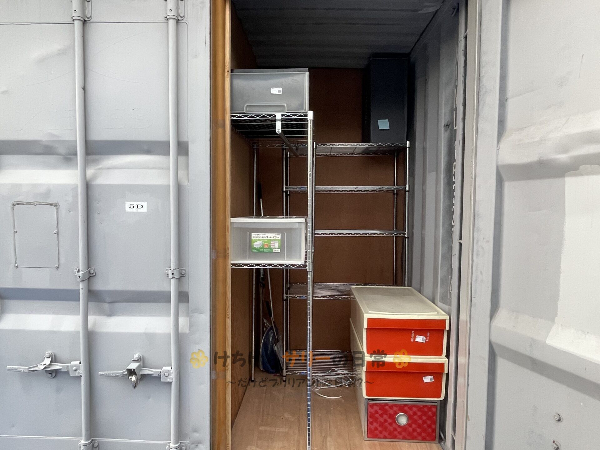 更に、ジモティースポットで購入した収納ケースも置いて、トランクルームをバージョンアップしたよ。
