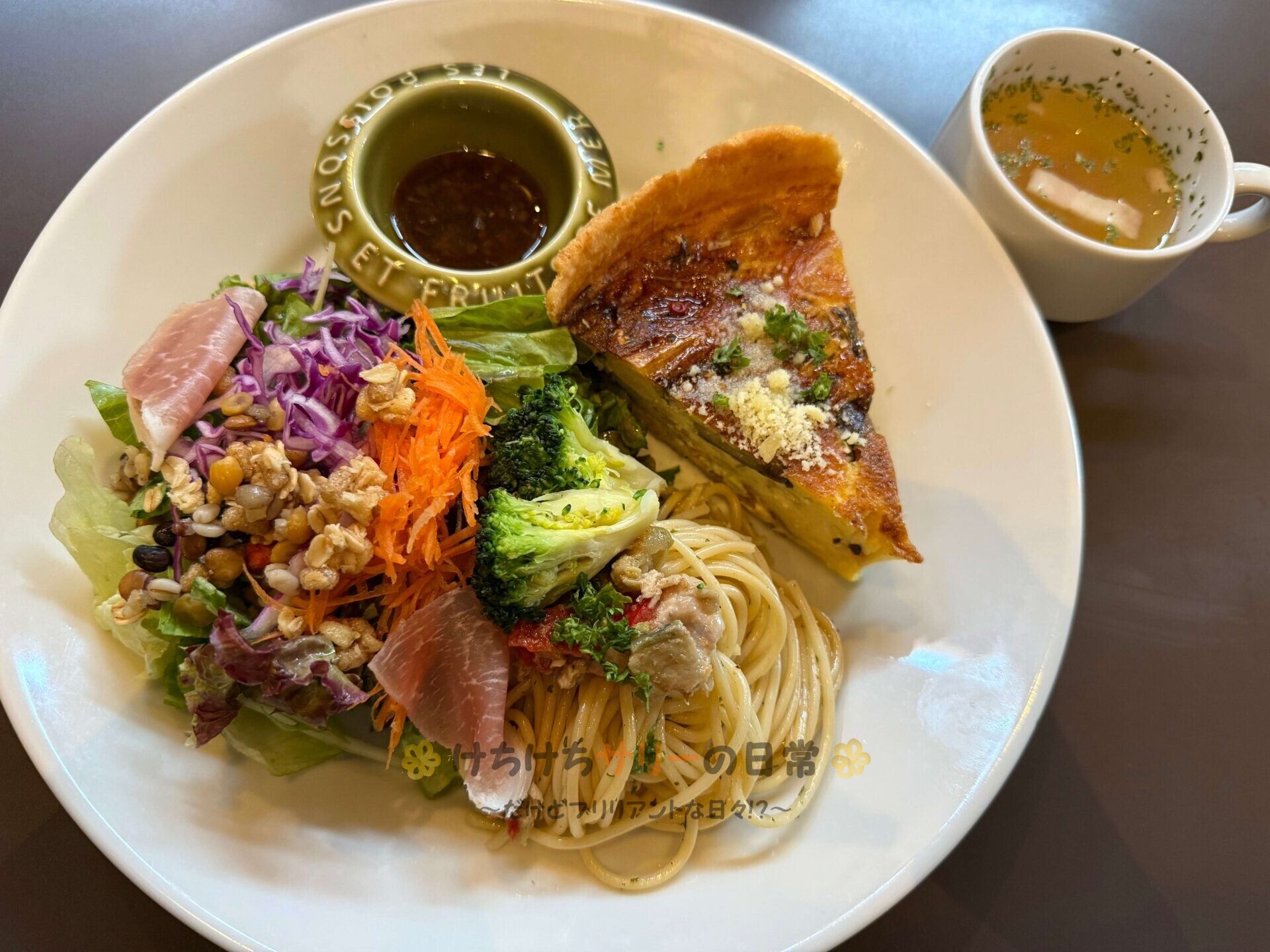 サリーが注文したのは「オイルサーディン、茄子と枝豆の 帆季自家製 キッシュ&パスタ」。