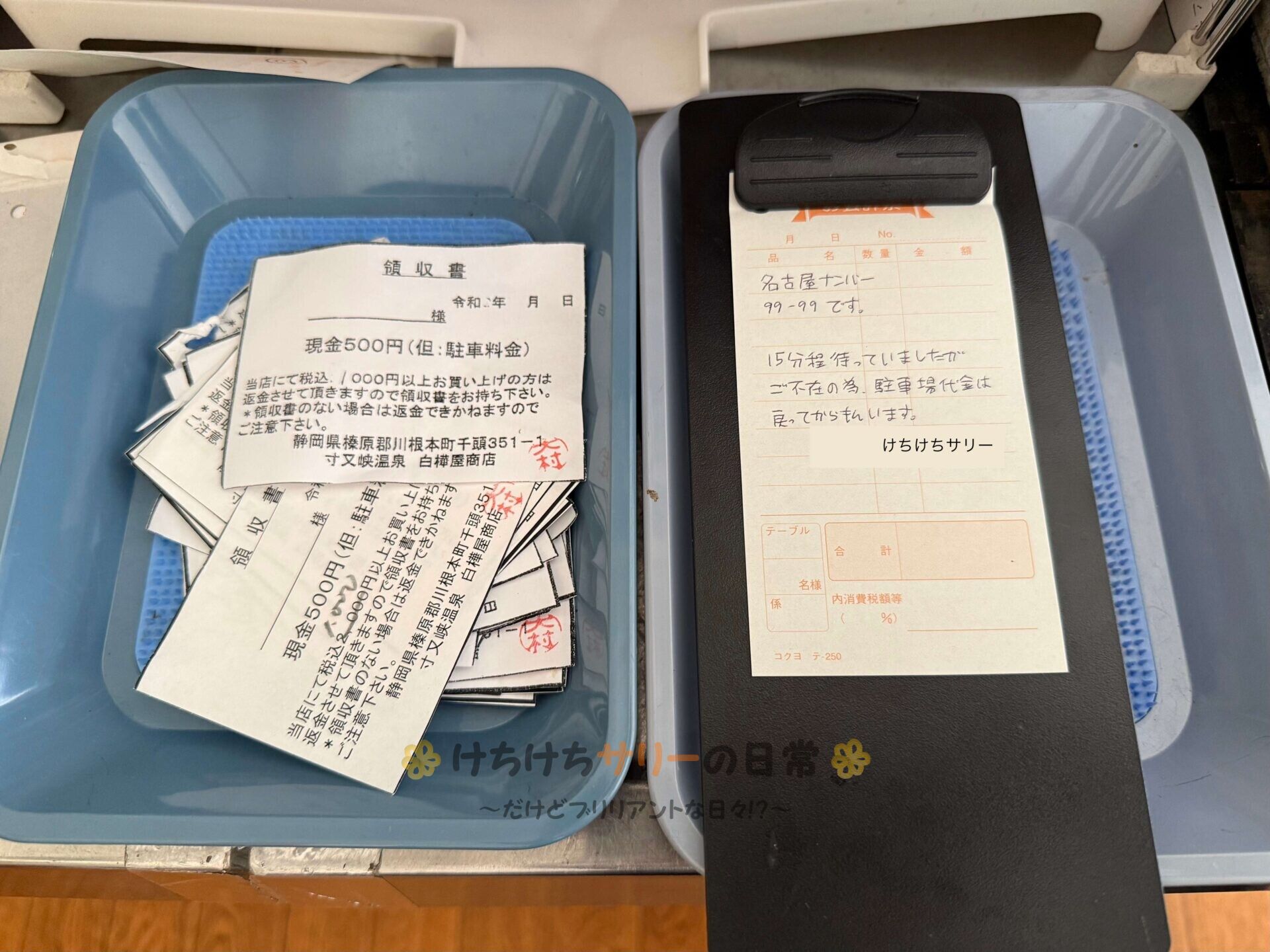 お店の方に駐車場代について聞いてみたら、駐車場代金を500円払うか、あるいはここのお店でお土産を買う、またはご飯を食べれば駐車場は無料という事。
