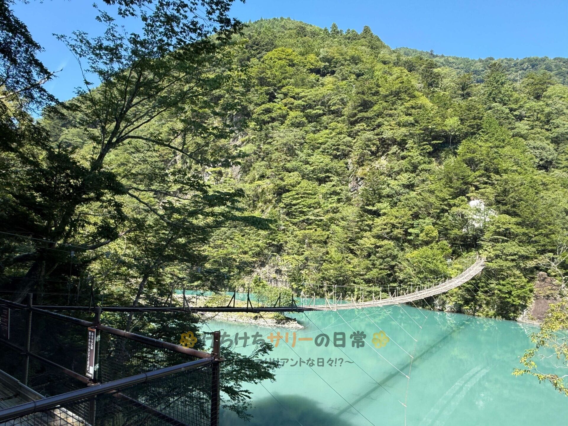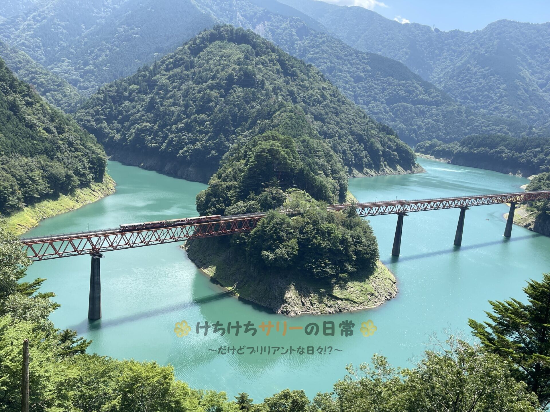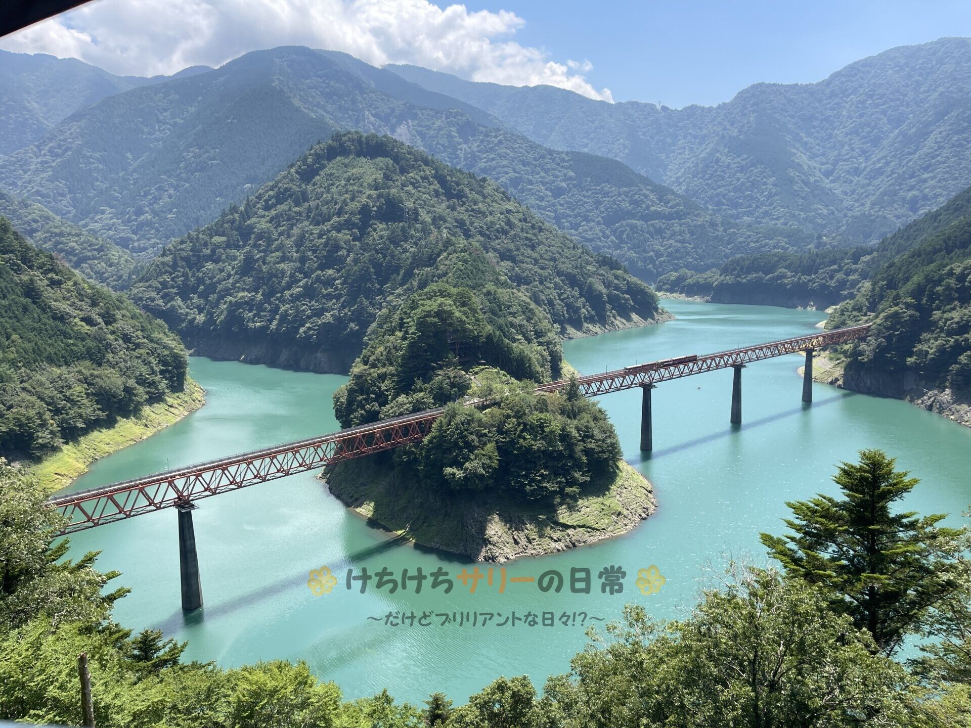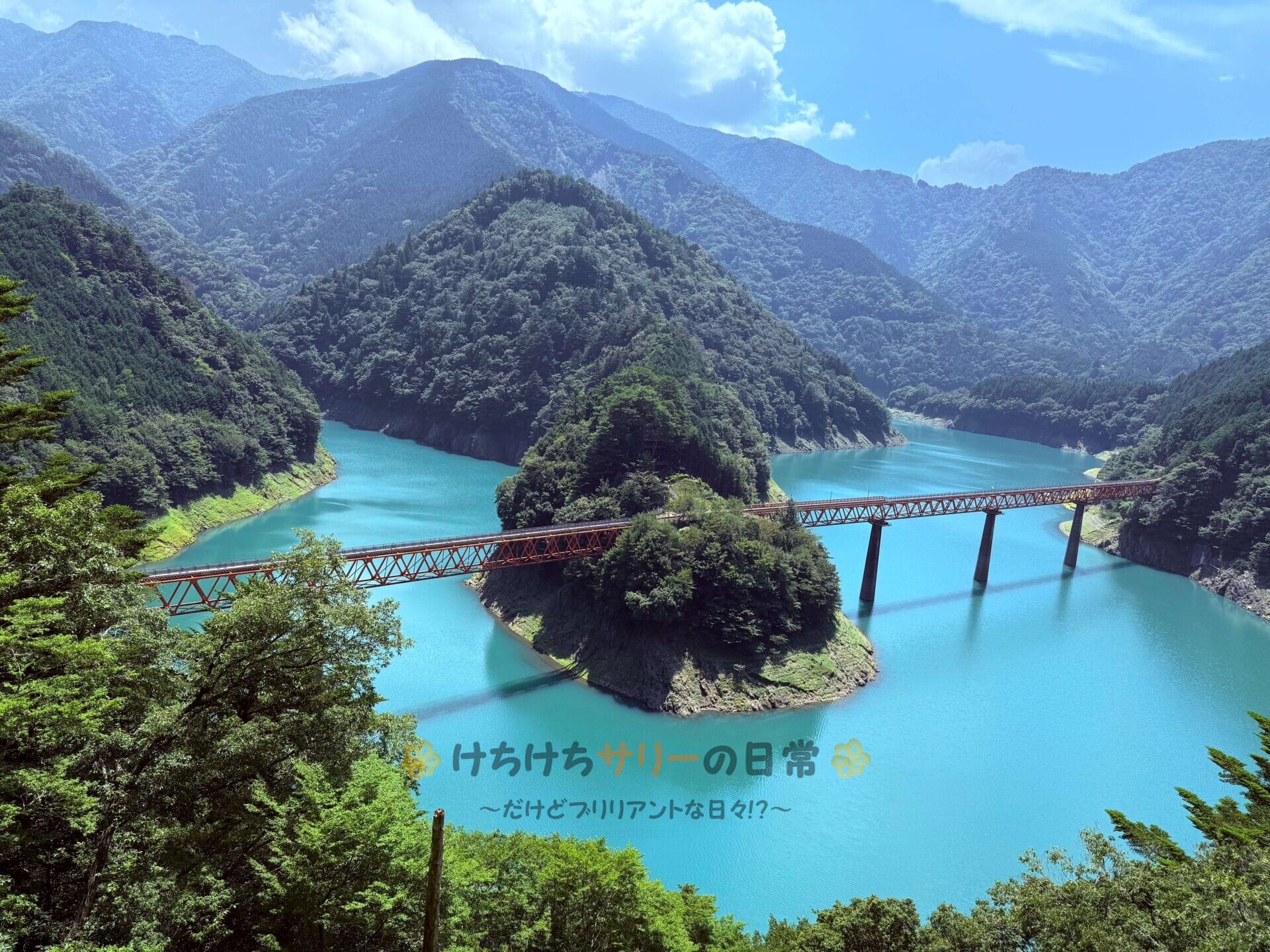 静岡県の山間部を旅するサリーと相方。 午前中は寸又峡観光で夢のつり橋を渡ってきたよ😉 すっごく綺麗で大きなつり橋とエメラルドグリーンの湖に癒されたよ✨ 奥井川レインボーブリッジを見るために行った奥大井湖上駅展望所もまさに絶景で、しばらくぼーっと景色を眺めて自然に癒された1日だったよ😊