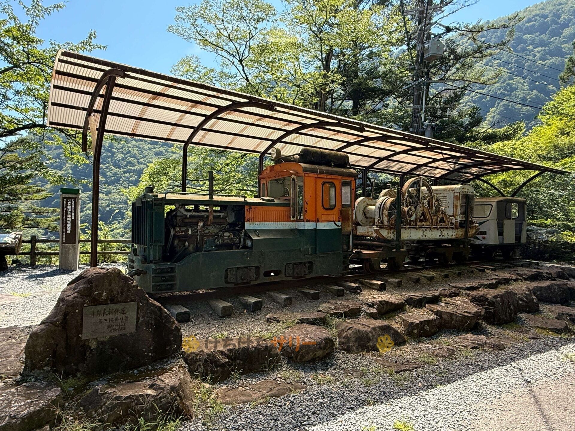 階段を登り切った先には使わなくなった鉄道が置いてあったよ。