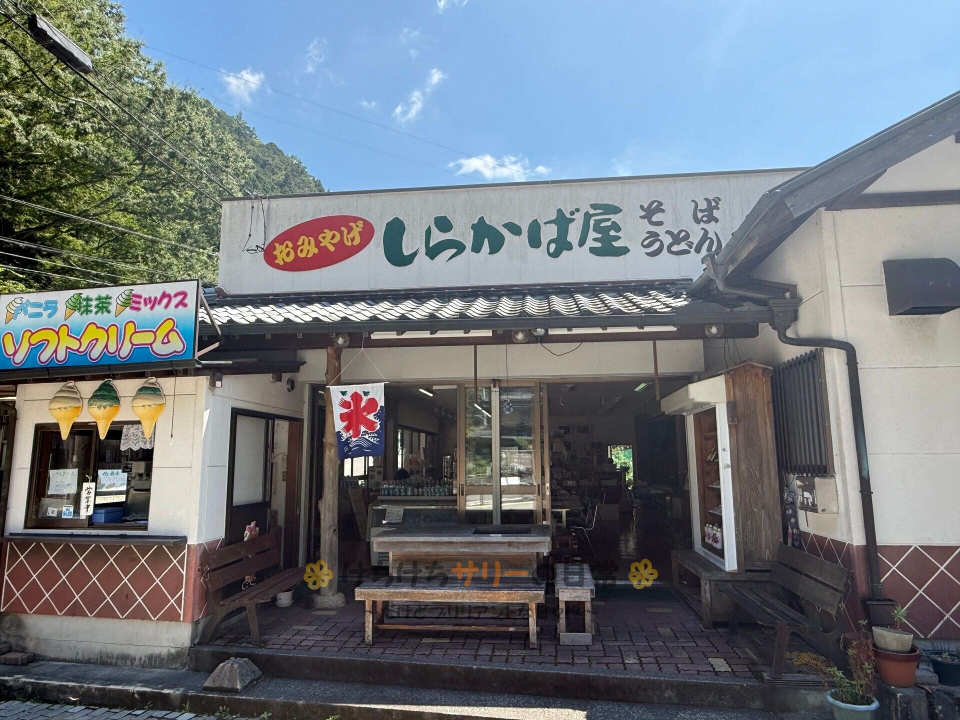 後で何か買えば駐車場が無料になるという事で「しらかば屋」というお土産屋さんにマイペンライ号を停めた。