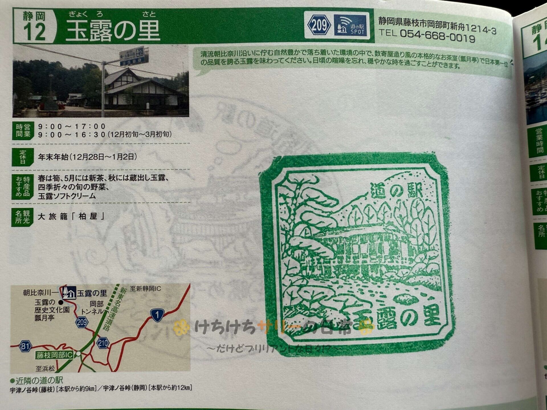 スタンプを押印! スタンプのデザインは緑に囲まれた道の駅だった。 スタンプのインクの色も玉露にこだわって緑色にしているのが良いね👍