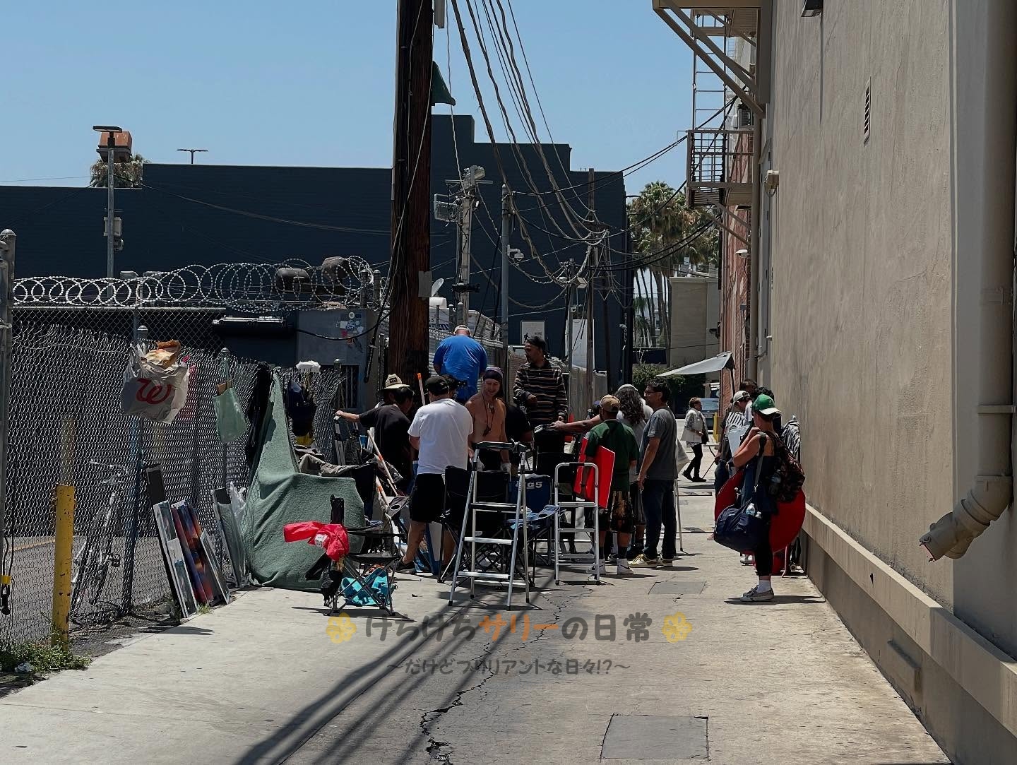 道の脇ではエキストラの人が並んで待ってて、サリー達が横を通り過ぎて行った後、道が封鎖されて撮影が始まった📽️✨