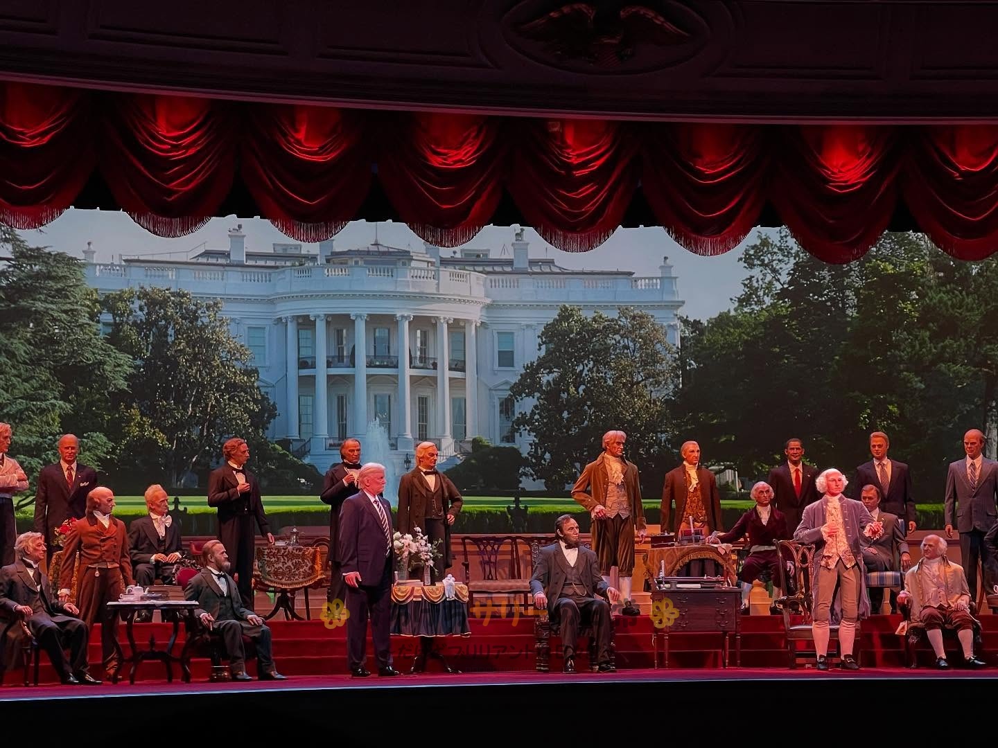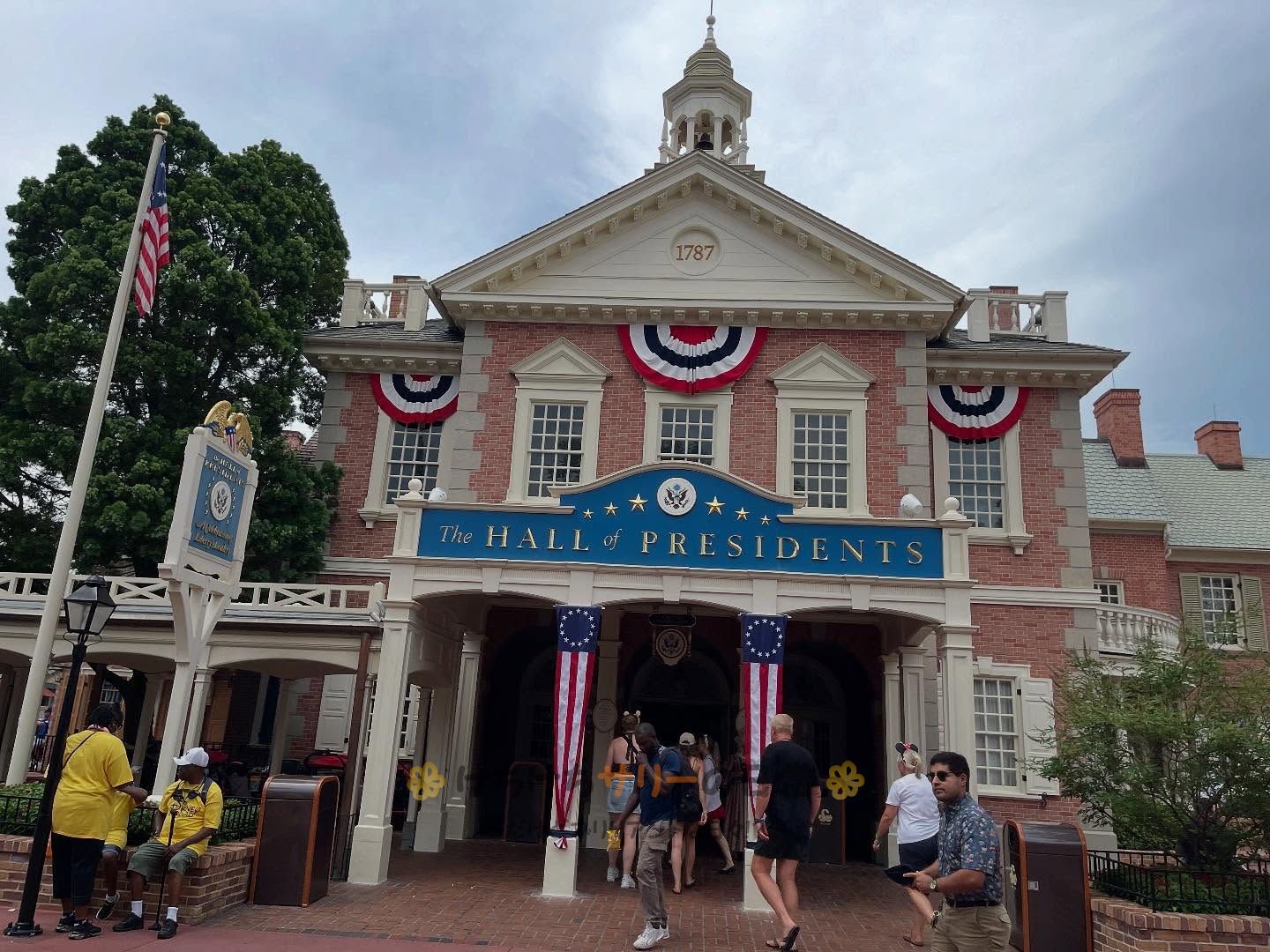 マジックキングダムには『ホール・オブ・プレジデンツ』っていう歴代の大統領が勢揃いして、自由とは何かや民主主義とは何かを語るディズニーっぽくないアトラクションがあるんだけど、この日は1年で1番賑わいを見せる😆