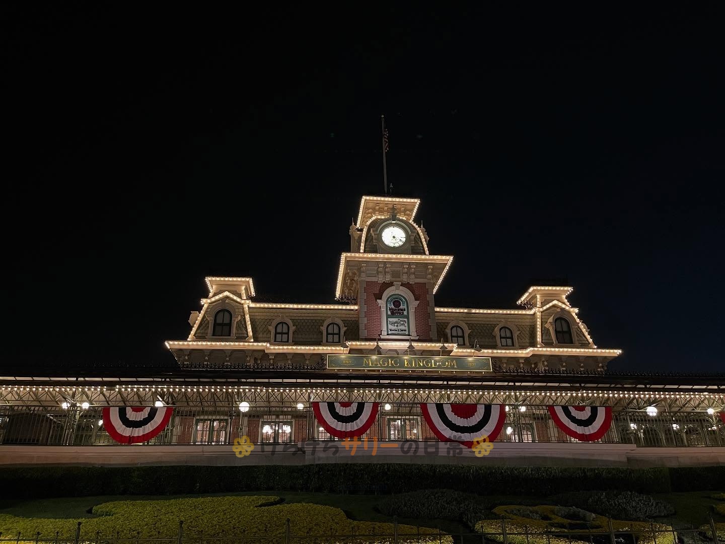暗くなってきたら、シンデレラ城もアメリカ国旗に彩られていて綺麗🇺🇸