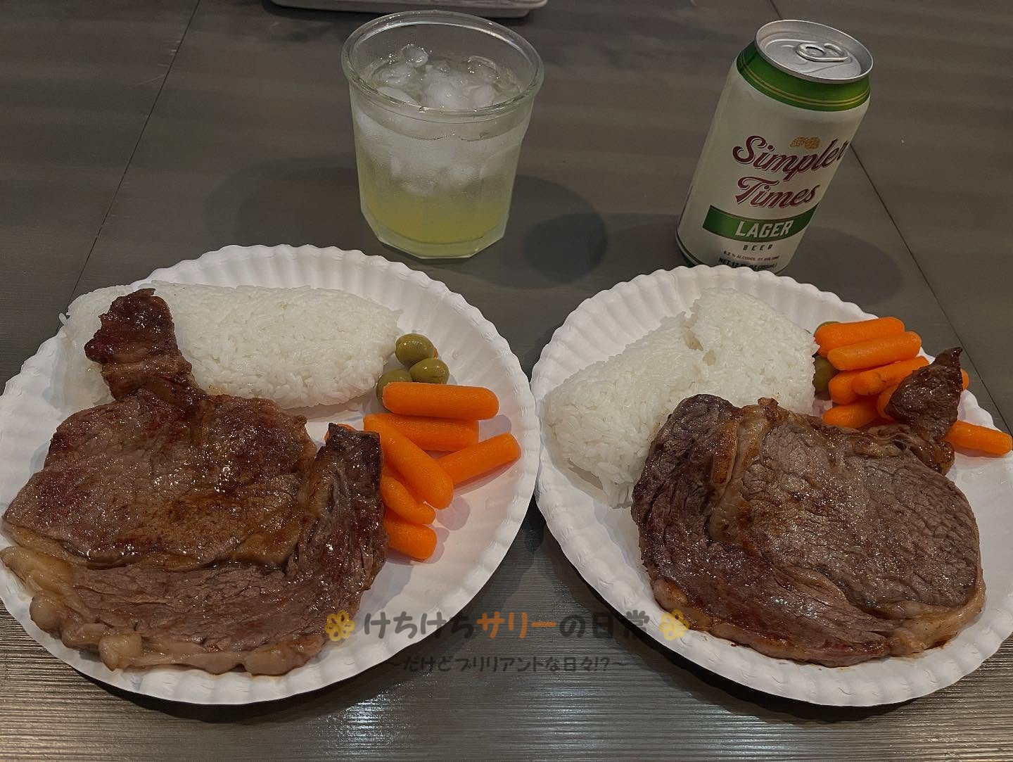 アメリカ生活20日目の夜ご飯にステーキを食べたお話しだよ。