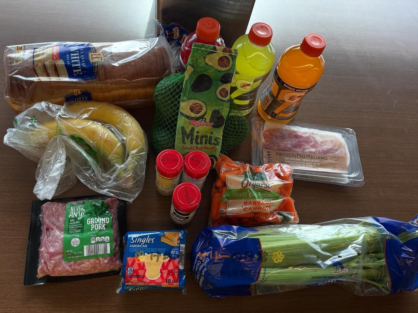 最後は、家の近くで食料品を入手してから帰宅したよ🙂 アメリカで1番安い野菜はセロリとスティック人参で、下の写真右下に映っているように1袋にかなりたくさん入ってるのにどちらも1ドル≒156ぐらいで買えるの!! だからサリー達、アメリカ滞在中は毎日セロリと人参を食べて栄養を補ってたよ👍 多分一生分のセロリを食べたと思う(笑)