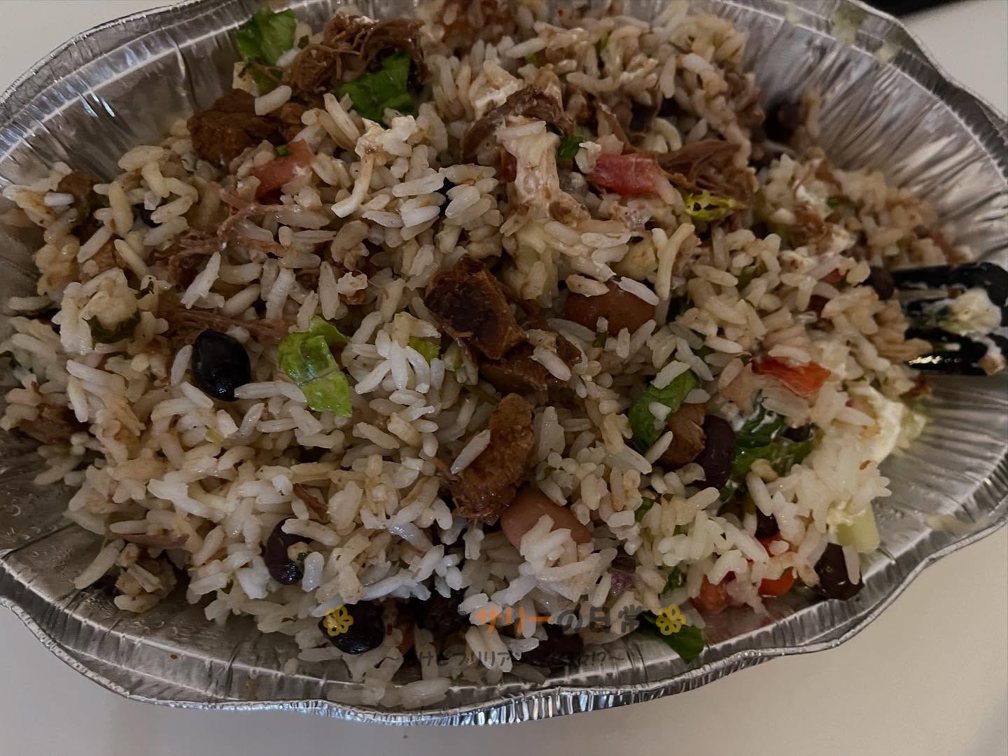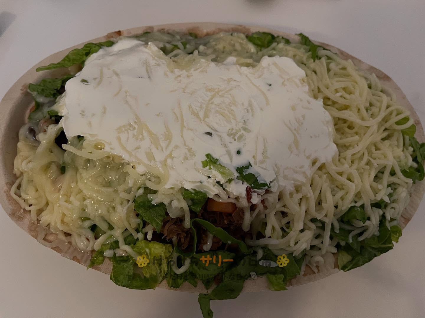 前回はトルティーヤに巻かれた”ブリトー”を頼んだけど、今回はお皿に盛った”ボウル”を選択!大きめのボウルにこれでもかというぐらい、ぎっしりと詰めてこんでくれたよ😆