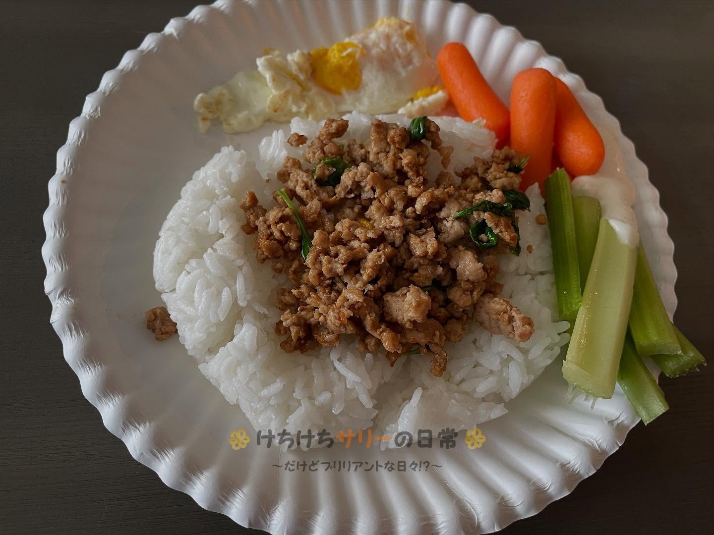 お昼12時頃に相方が目を覚ましたので、ガパオライスをちゃちゃっと作ってお昼ご飯を食べたよ🥄