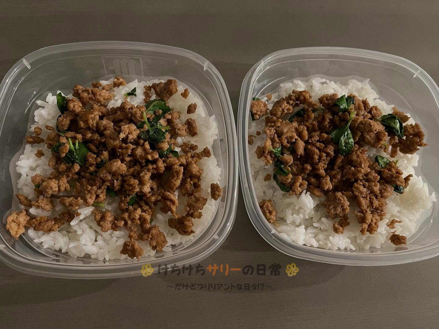 →豚ひき肉とバジルだけでできるので手軽でお弁当だけじゃなくて夜ご飯にも食べてたよ。