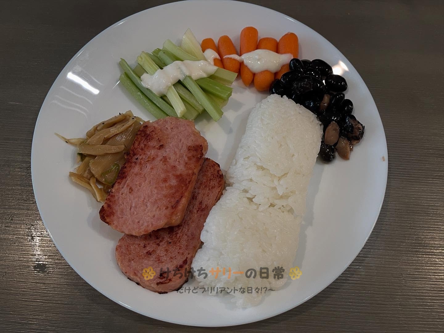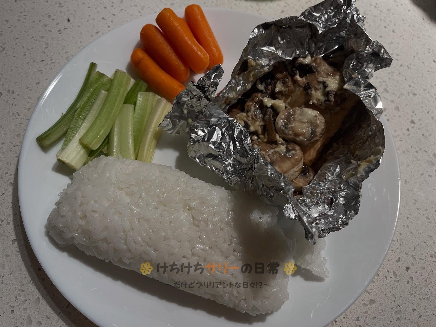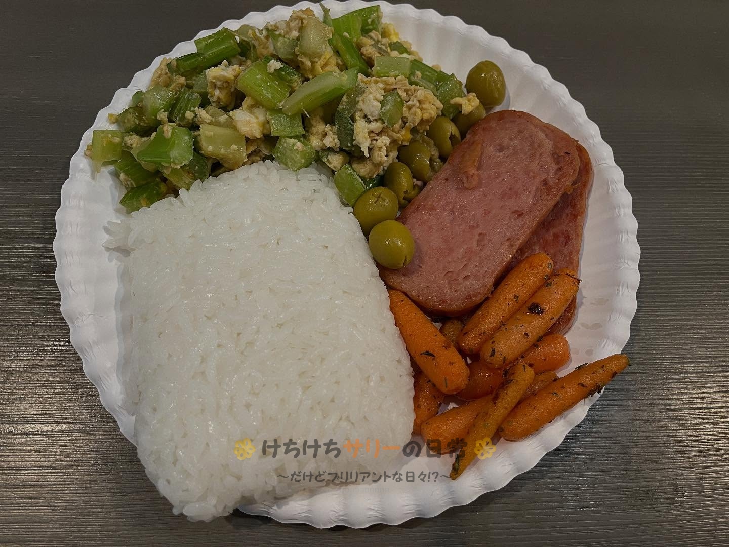 おかずの場合はスパムを焼いたり、ブロッコリーやセロリと肉を炒めたり、サーモンのホイル焼きや炒飯を作ったりといった感じ。