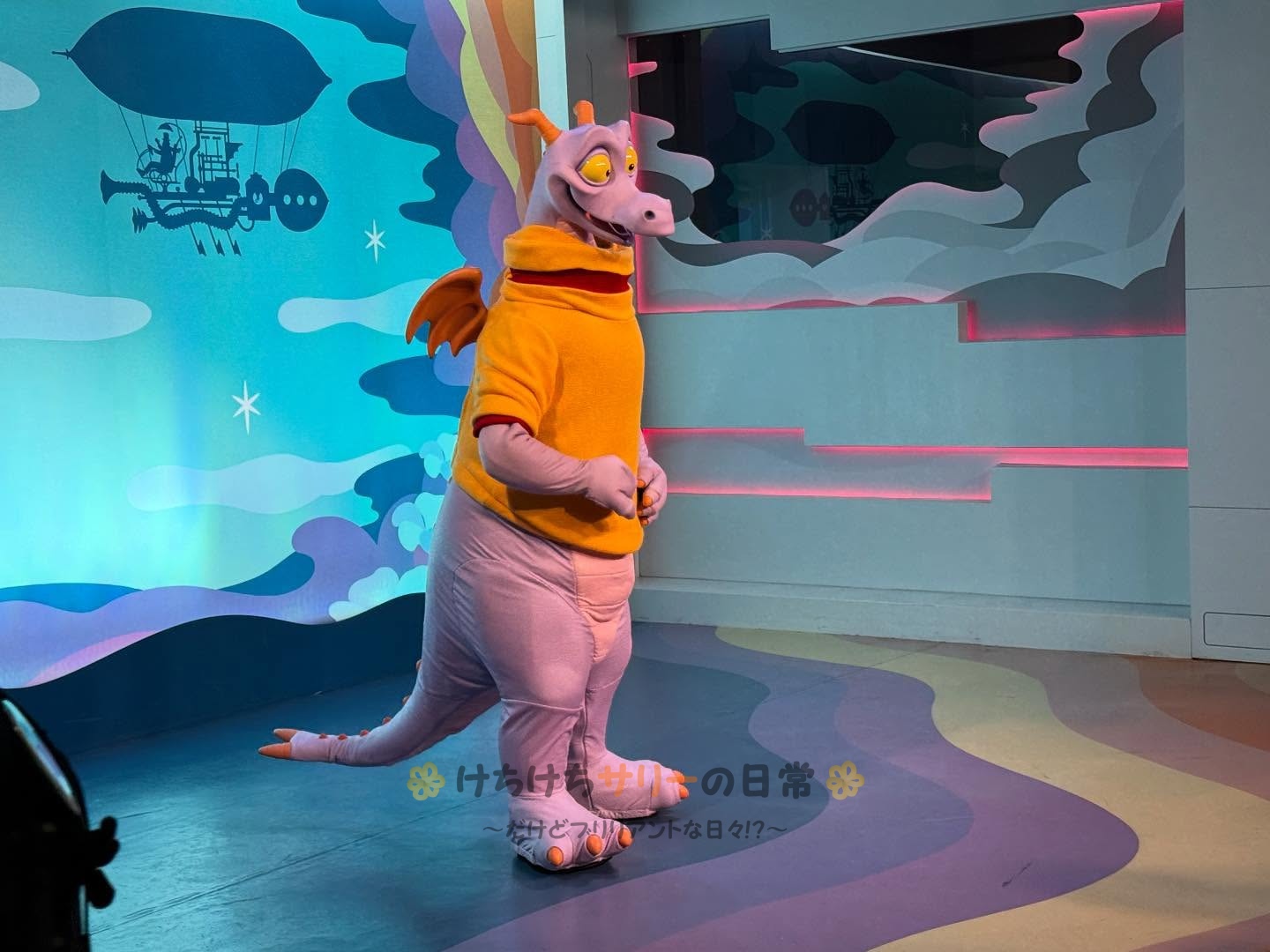 EPCOTの「ジャーニー・イントゥ・イマジネーション」でフィグメントっていうマイナーだけど大人気の紫色の恐竜キャラクターに出会えたよ😆 気になった人はEPCOTに会いに行ってね!