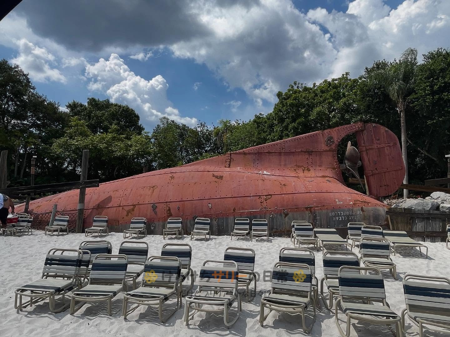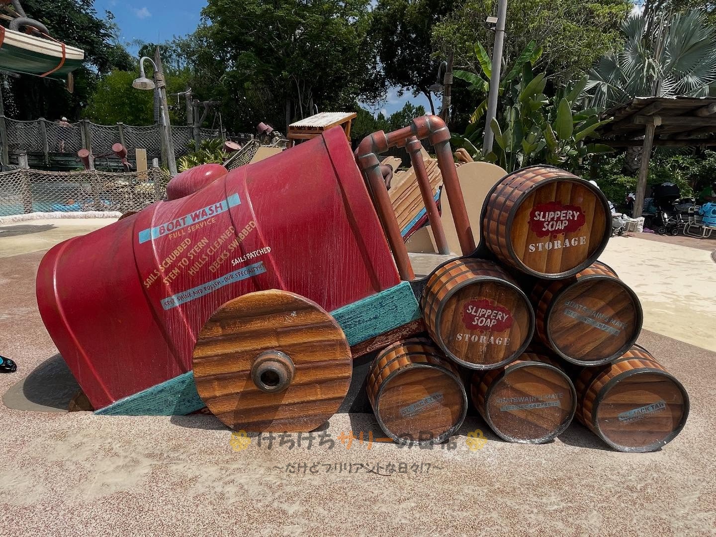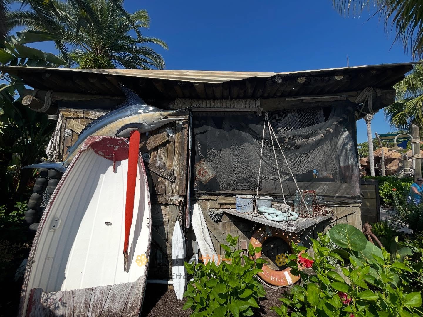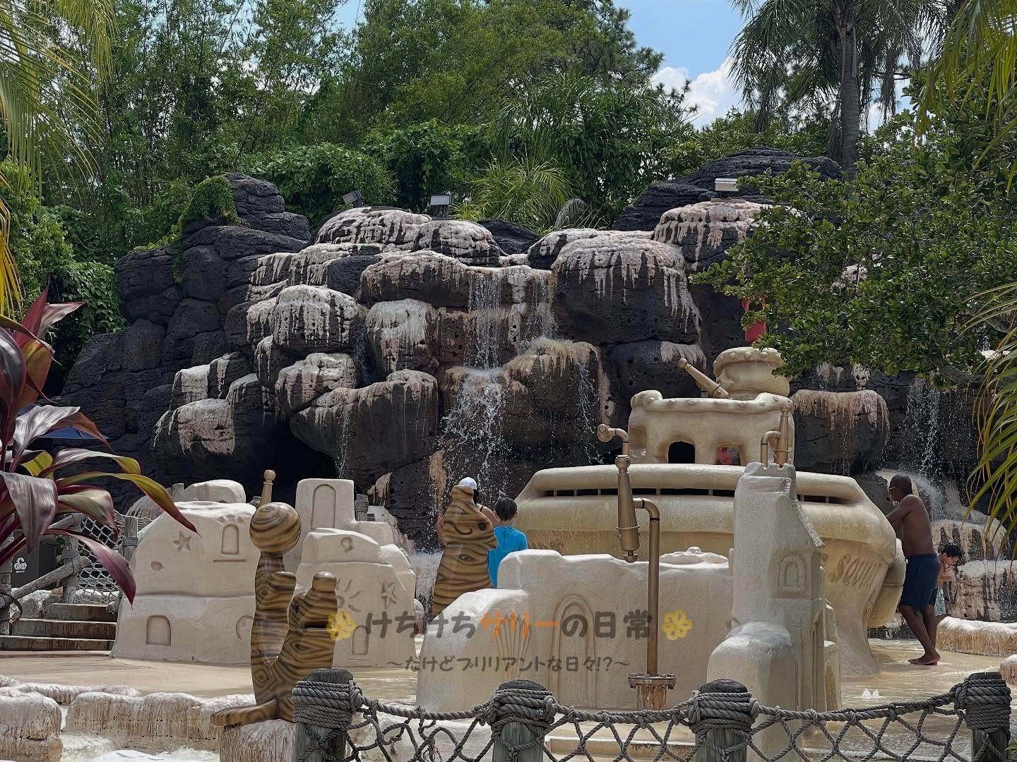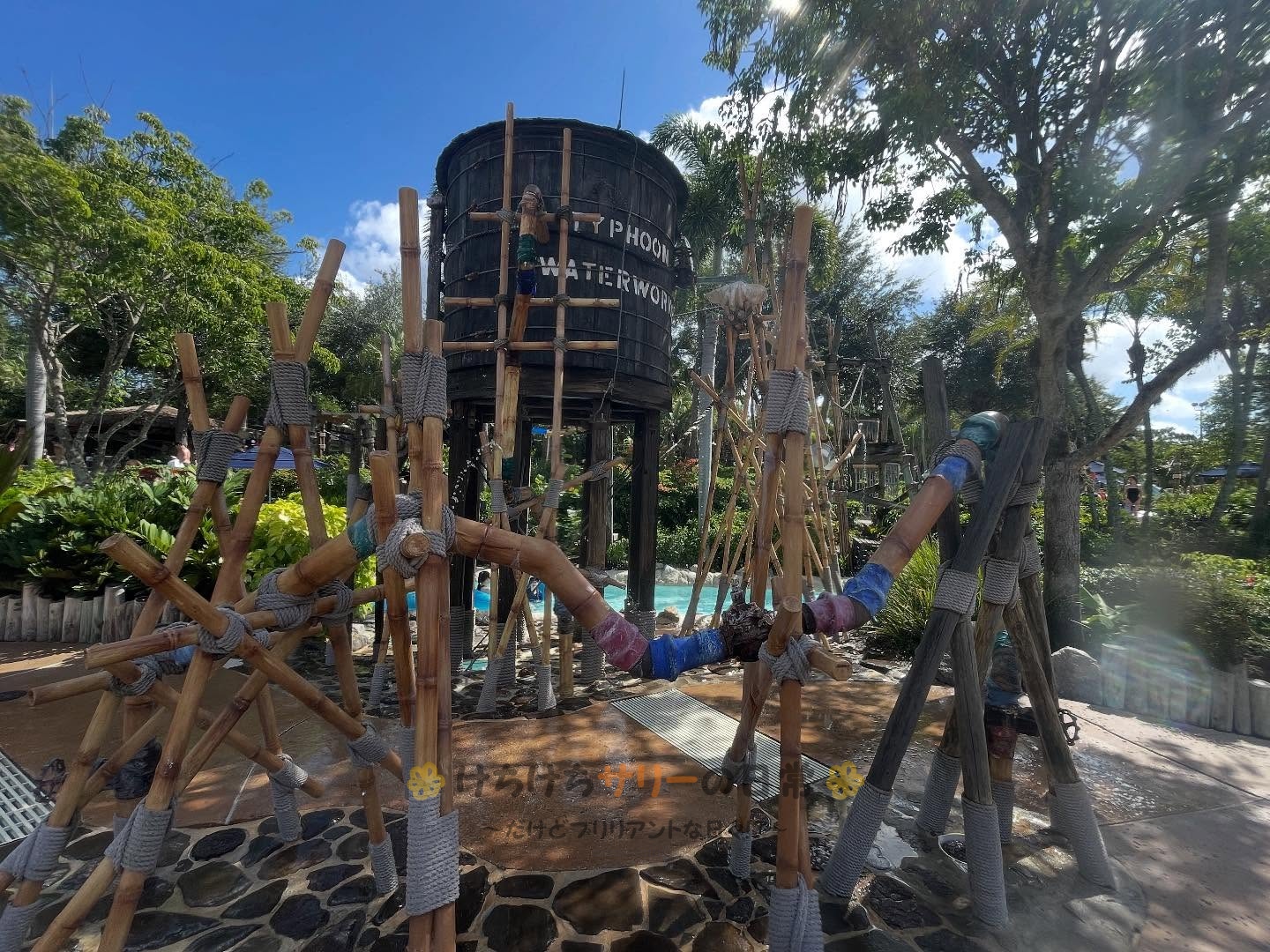 大型台風が過ぎ去った後の陸の孤島がコンセプトになってて、「ブリザードビーチ」に負けず劣らず、ディティールまで凝って作られてて、ただパーク内を歩いてるだけで楽しい😊