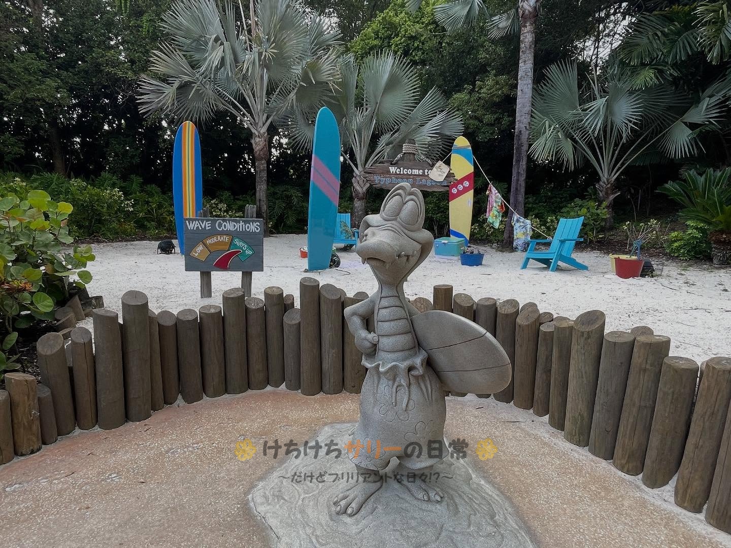 「ブリザードビーチ」に続き、もう1つのウォーターパーク「タイフーン・ラグーン」へ向かったサリーと相方。大型台風が過ぎ去った後の陸の孤島というコンセプトが徹底していてパーク内を歩いてるだけで楽しい♪ 連日37~38℃を記録する猛暑のフロリダではウォーターパークが癒しの場になってるよ😊