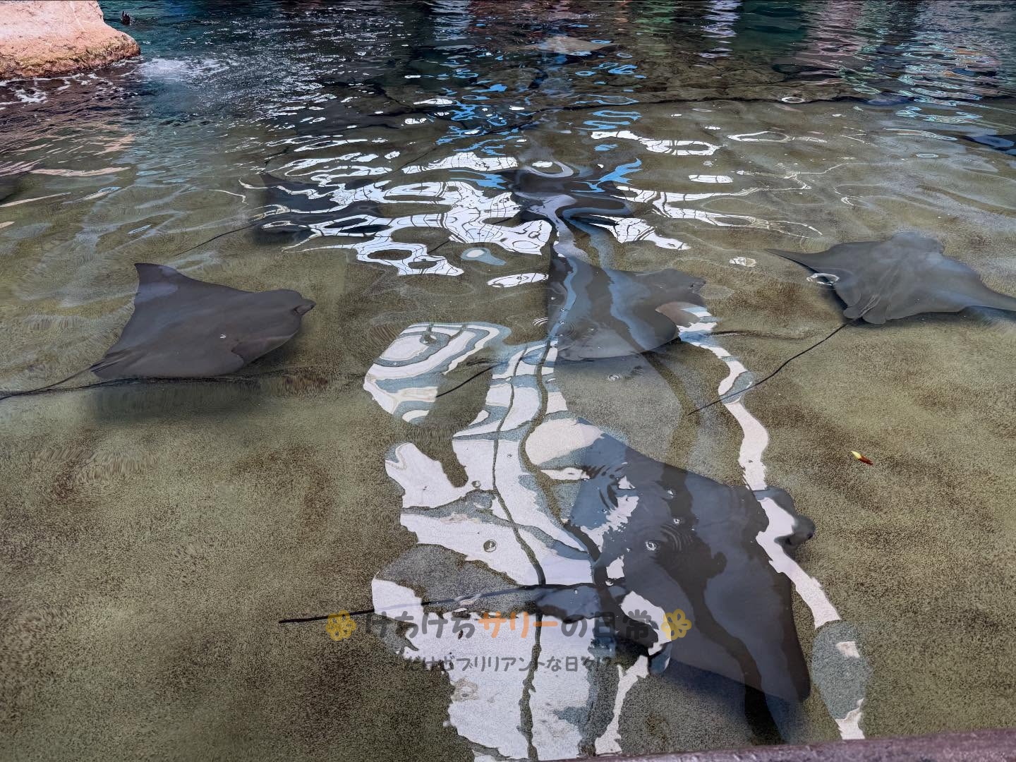 それではいくつかを紹介するね。これはエイに直接触れられるプール😁 エイの肌はツルツルしてたよ😆