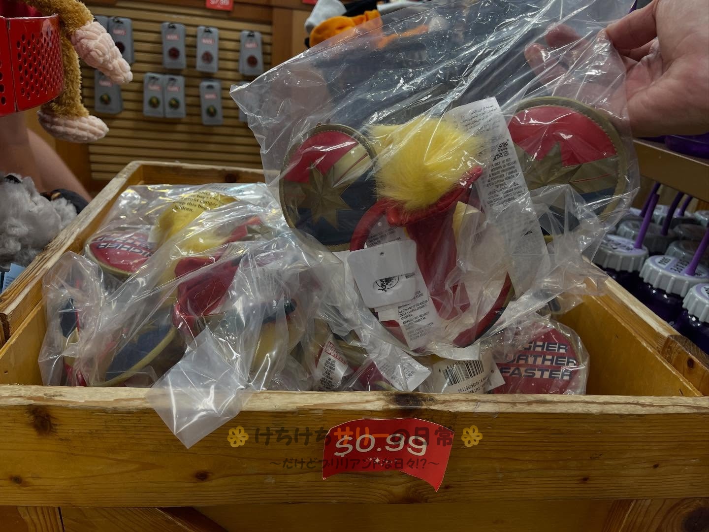 ディズニーストアではキャプテンマーベルのミッキーの耳がなんとたったの0.99ドル≒150円で売ってたよ😦 ディズニーワールドだと1個25ドルぐらいするから、なんと96%OFF🉐