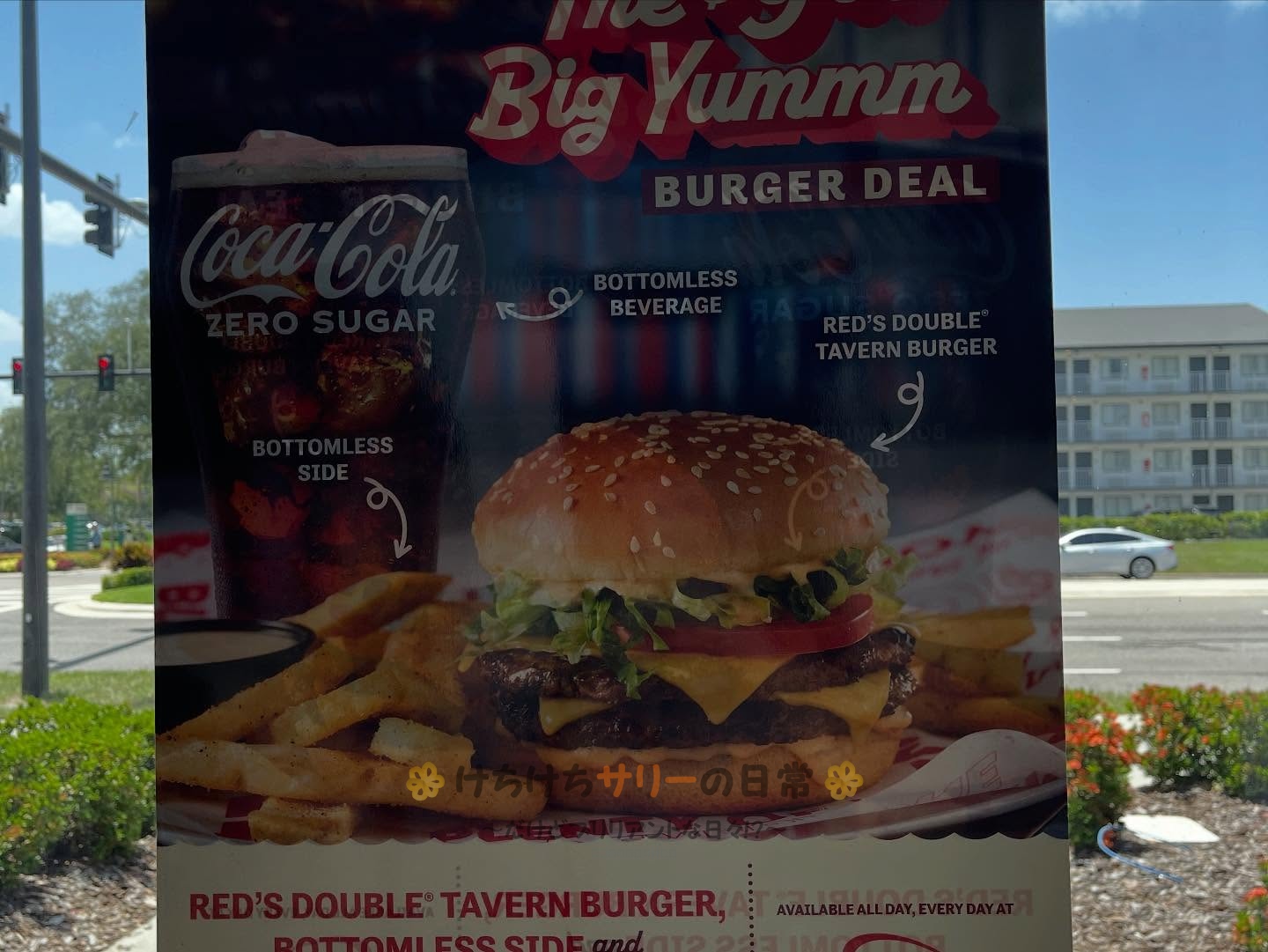 アメリカ生活41日目のお昼に食べたRed Robinで食べたハンバーガーについて書いたよ😃
