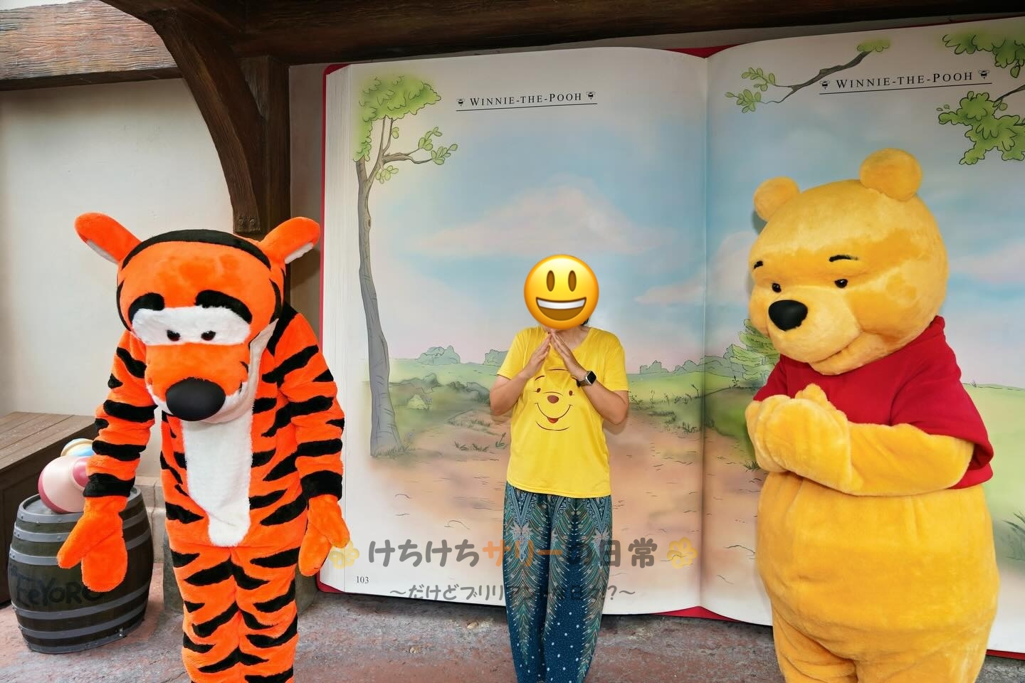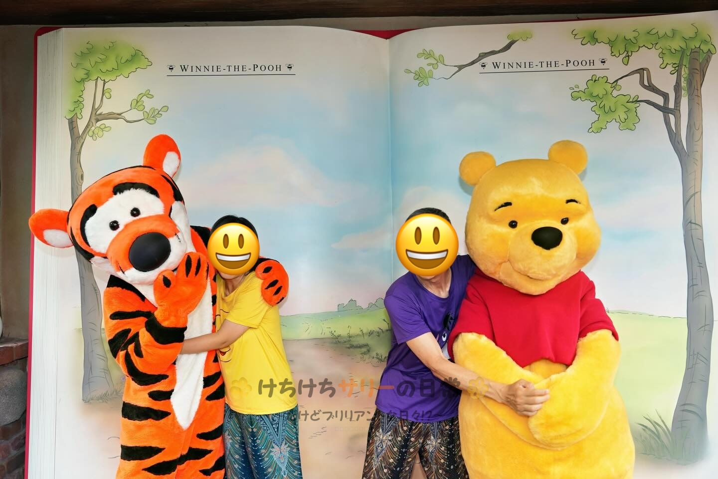 満面の笑みでプーさん&ティガーと写真を撮る📷
