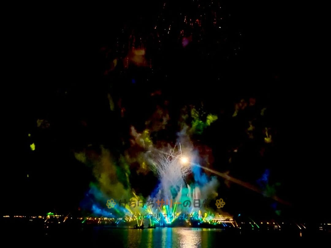 レーザーや噴水が上手く融合して、時に本当のオーロラを見たかのように空は美しく輝くし、花火もディズニーらしい構成になってて本当に美しい😍