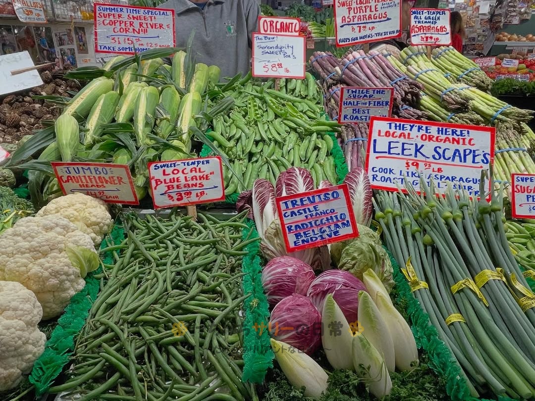 野菜はグラムではなくポンド当たりで$表示なので、安いのか高いのかよく分からないね(笑)