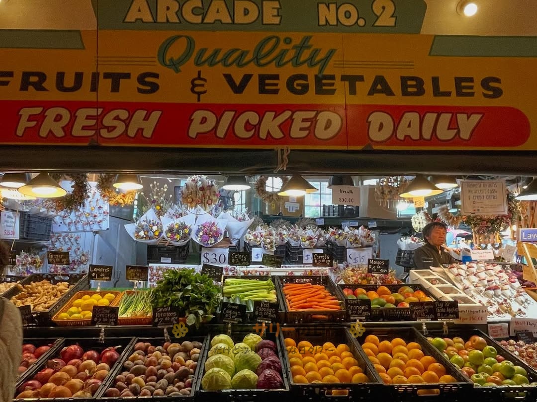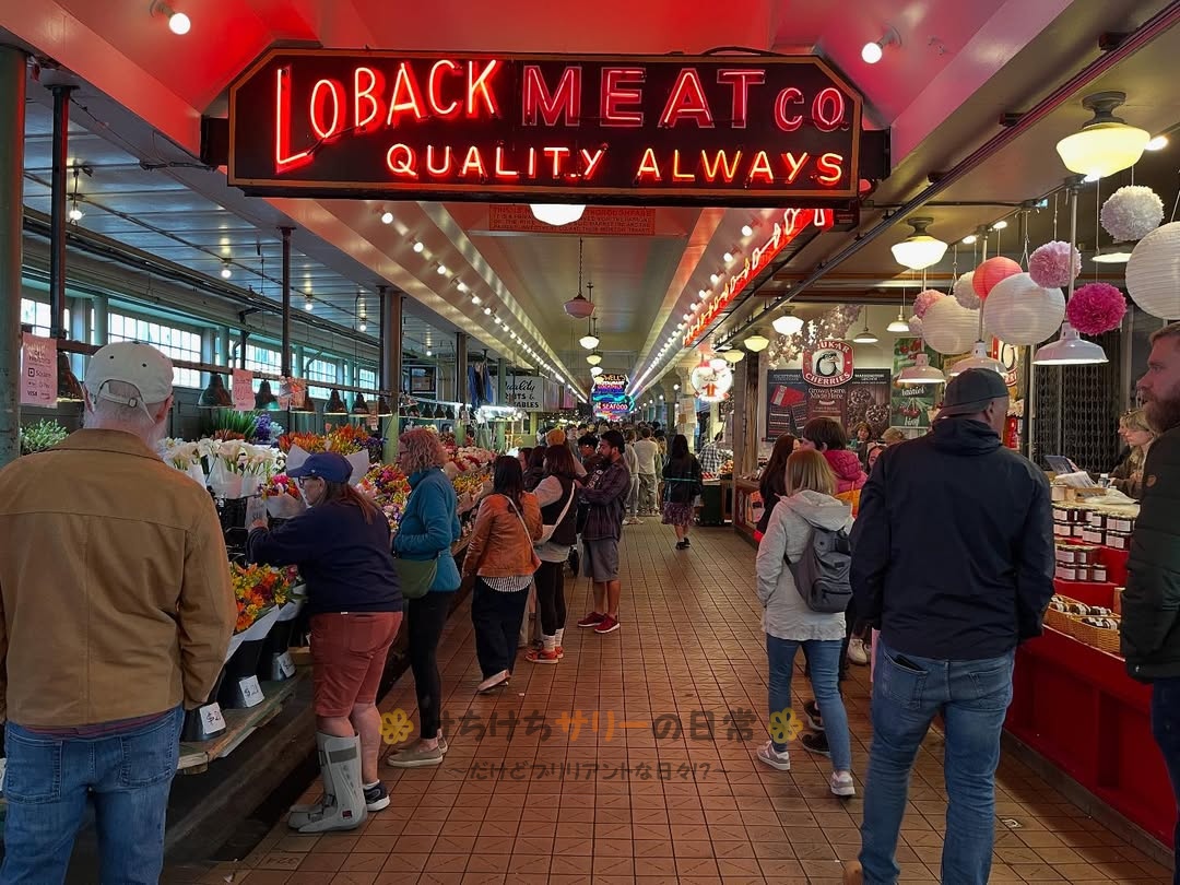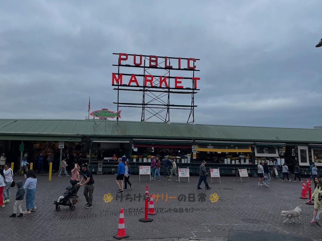 さてさて、今日はみんな忘れかけてると思うけどアメリカ旅行5日目のシアトルの観光のハイライト、パイクプレイスマーケットの様子を紹介するね‼️