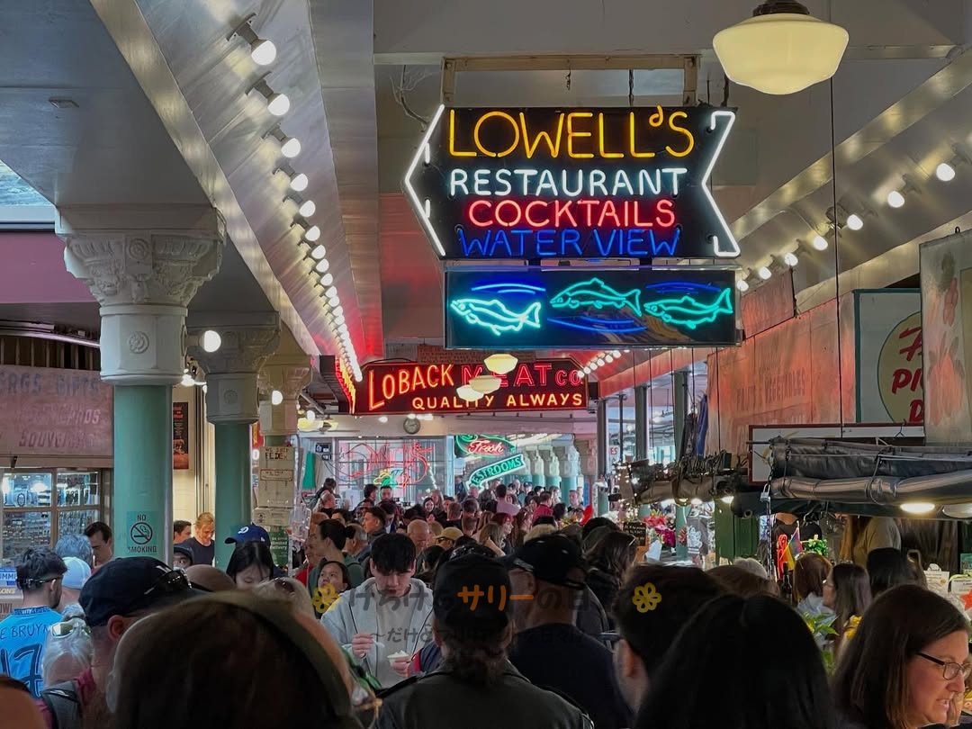 パイクプレイスマーケットはシアトル観光の目玉だけあって、たくさんの人が観光に来ていたよ😍
