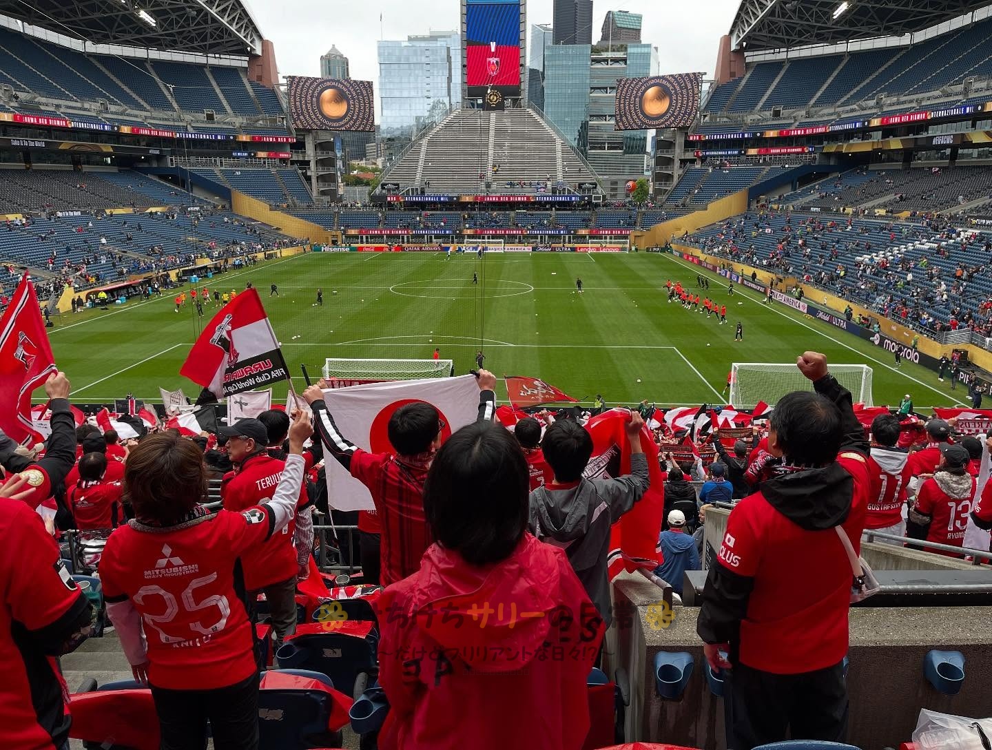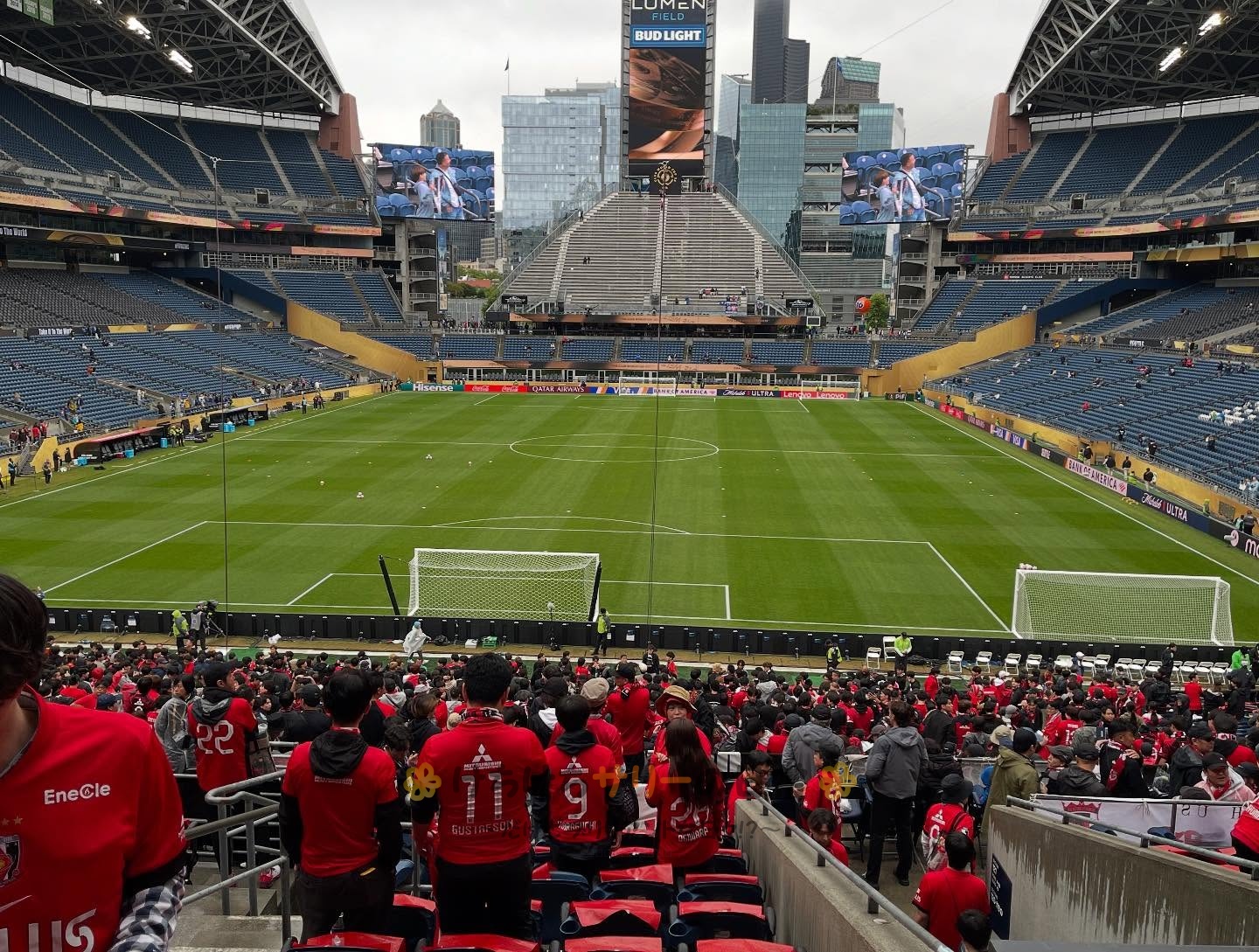 試合前の決起集会では本当にシアトルにいるのかと疑うぐらいの浦和サポの人数にびっくり😆 試合中も完全に埼玉スタジアム2002の雰囲気を作って選手を後押ししていたんだけど、試合は残念ながら敗戦😭 世界の壁はなかなか厳しいね。